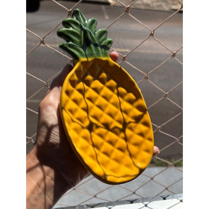 Prato de Sobremesa em Cerâmica Design Abacaxi
