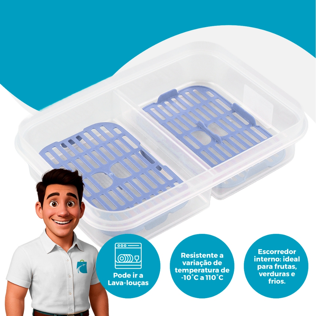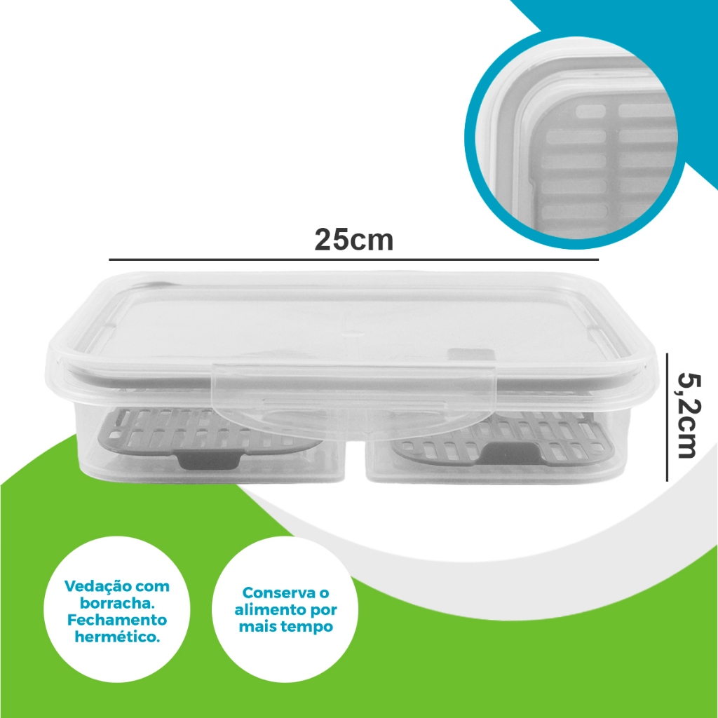 Porta Frios Pote Hermético 1 Litro Com Tampa e Escorredor