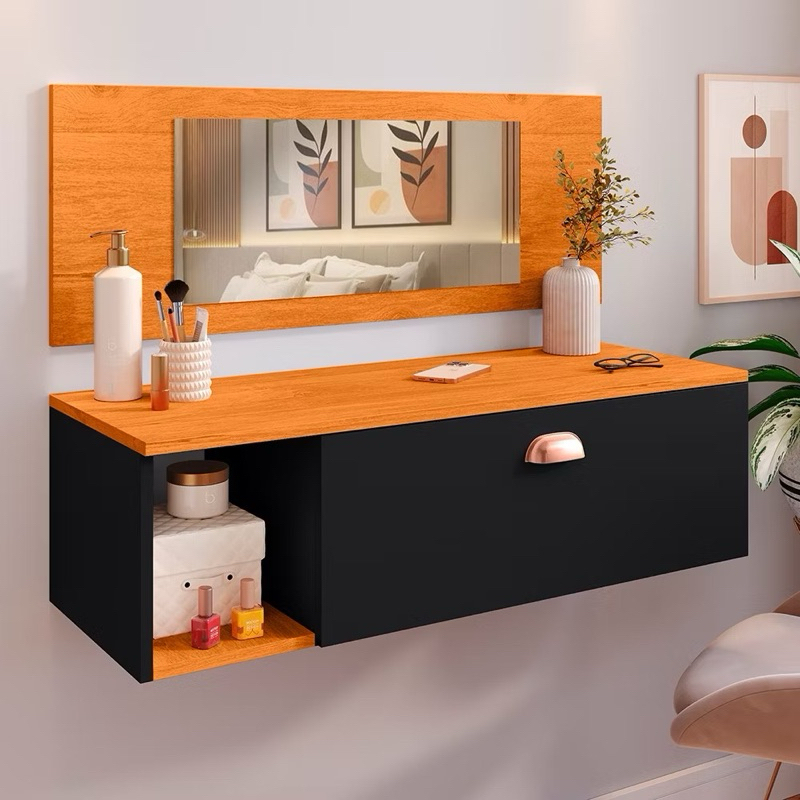 Penteadeira Camarim Suspensa com Espelho, Gaveta com Divisória e Nichos Make Up Elegante makeup