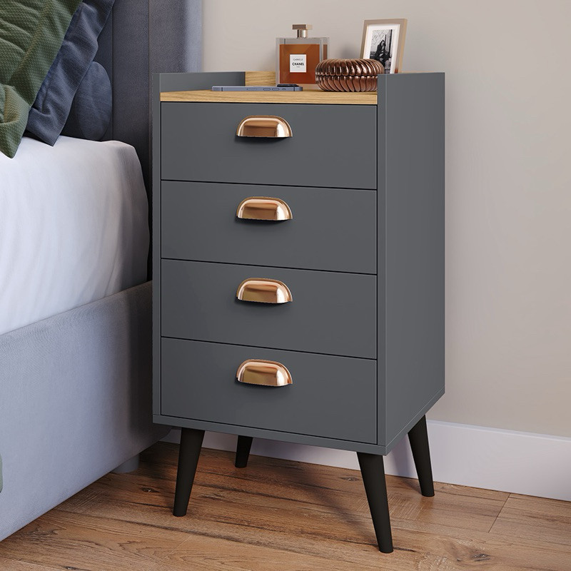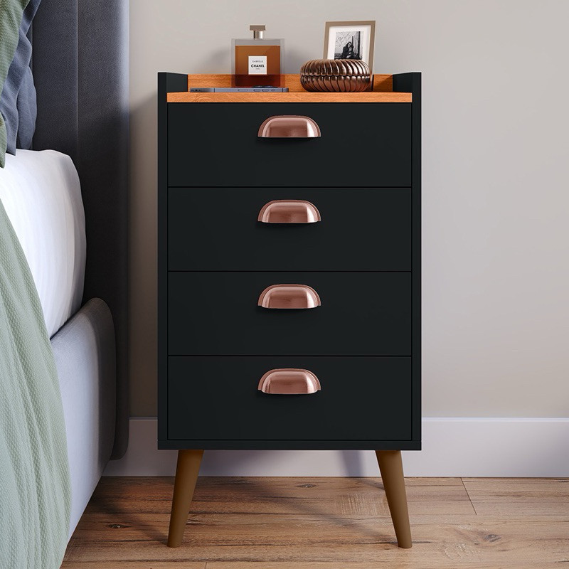 Mesa Cabeceira Mini Cômoda Luxo Concha Monet 04 Gavetas Pés Palito Quarto Organizador - LANÇAMENTO