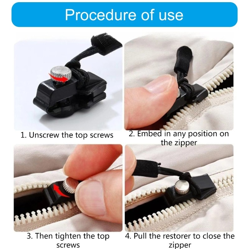 CLO 6 12 Peças Fixador Zíperes Ajustáveis 3 Ferramenta Reparo Diferente Instantâneos Controle Deslizant