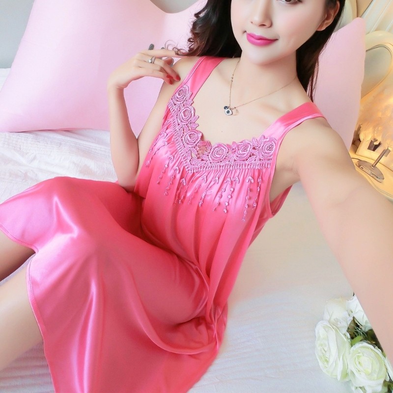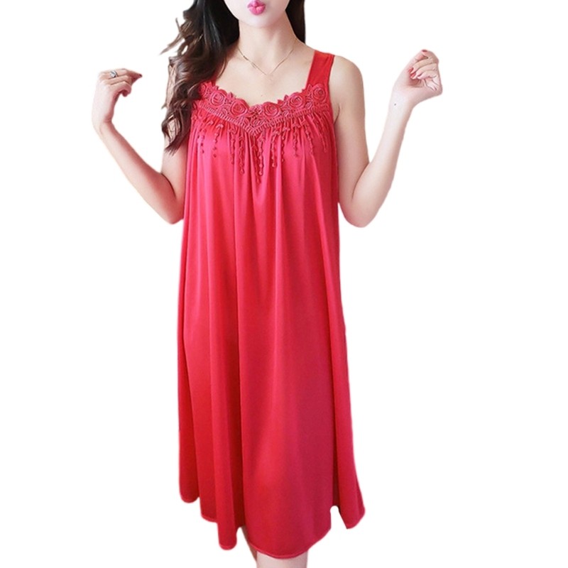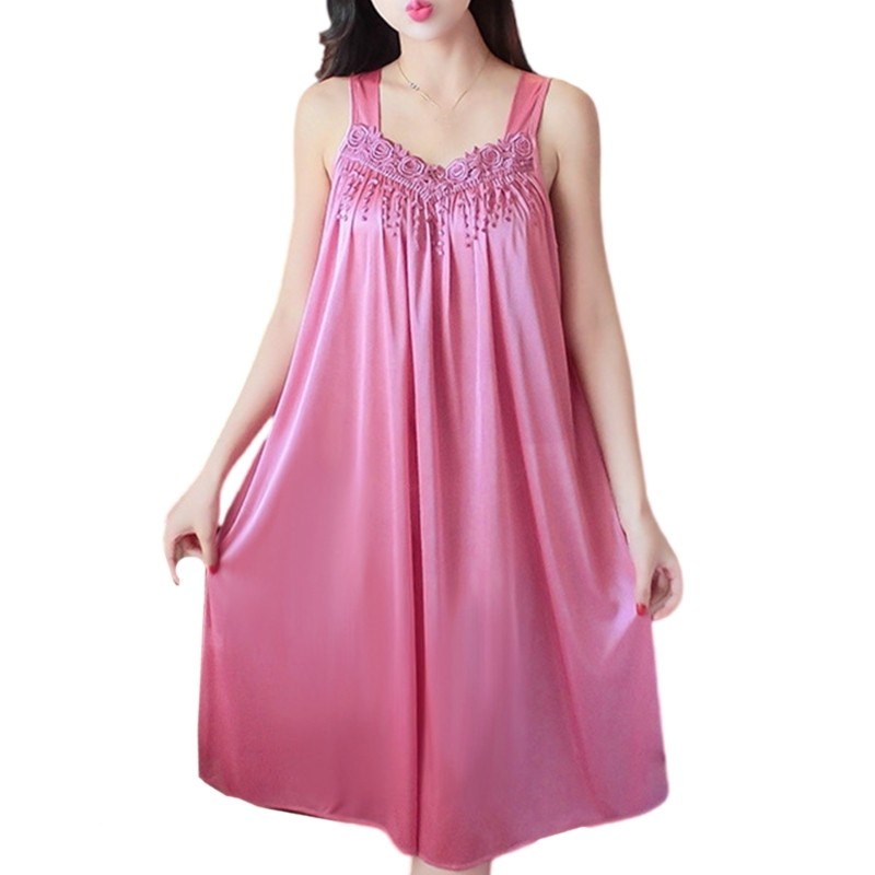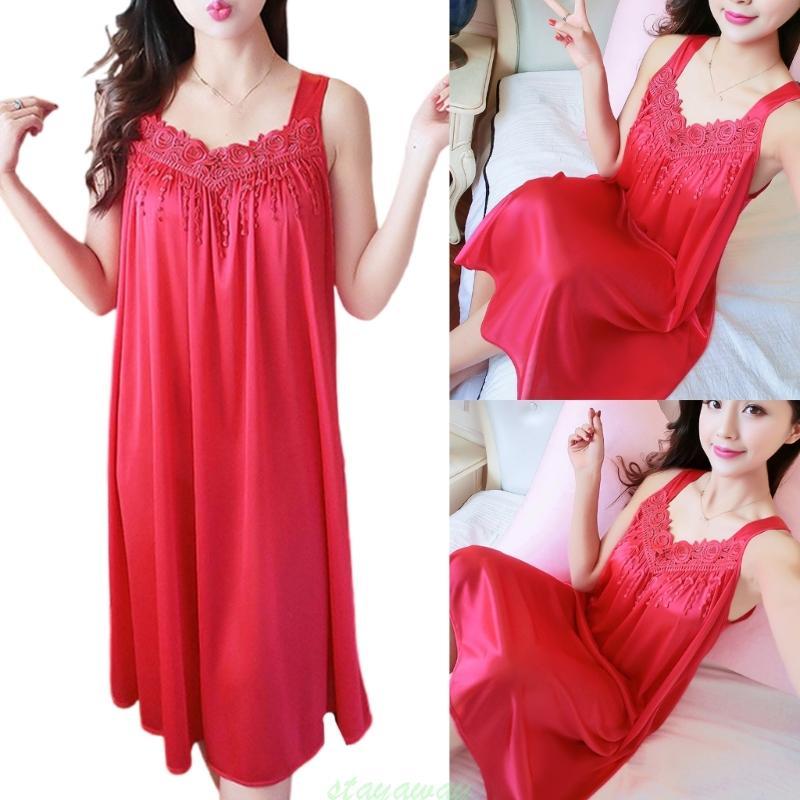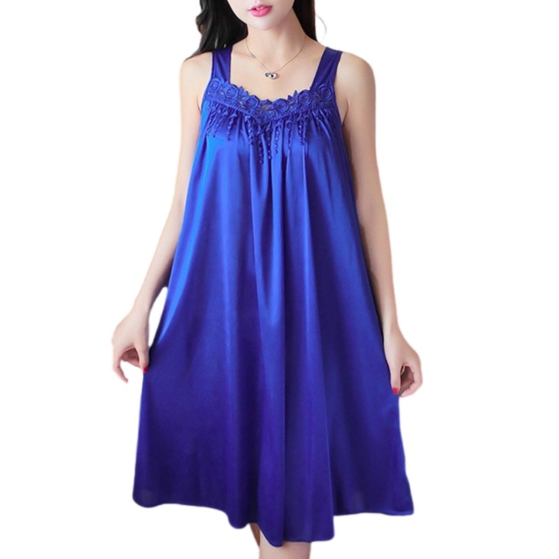 SRA Camisolas Seda Verão Mangas Pijamas Decote V Vestido Dormir Solto Sleepshirt