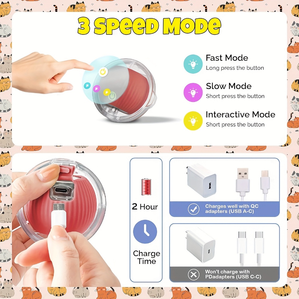 brinquedo interativo para gatos , simulado divertido bola de rolamento rápido reutilizável em tapete de brincar internos