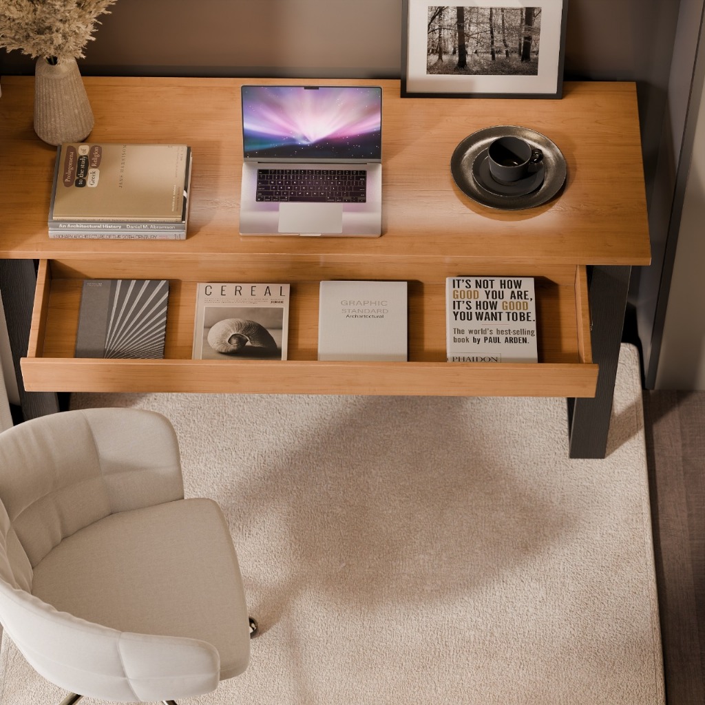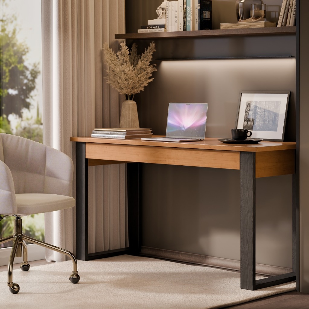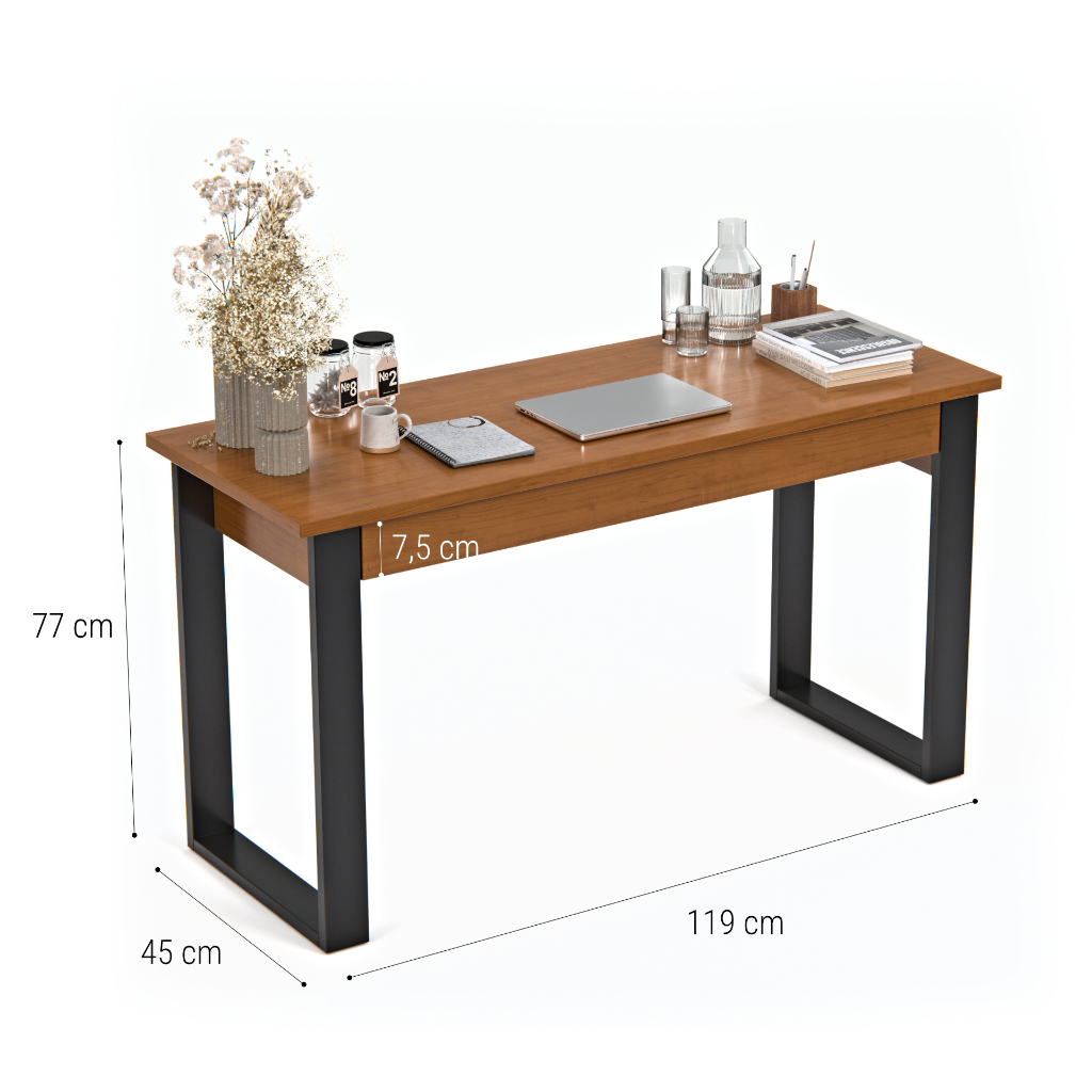 Mesa Escrivaninha Em Madeira Para Escritório Estilo Industrial Com Gaveta Cor Canela Casa Lustre
