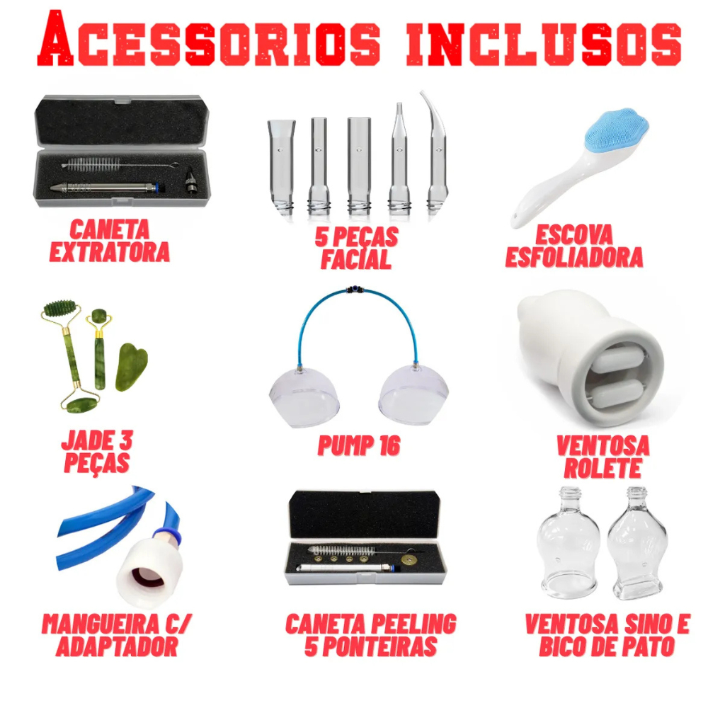 Kit Dermavácuo Profissional - Vacuoterapia + Endermoterapia + Peeling Diamante Completo