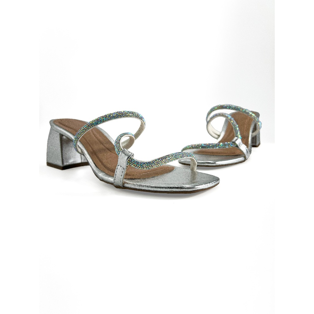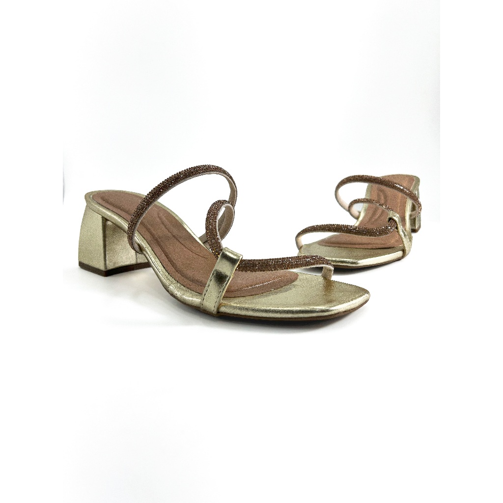 Sandália Feminina Salto Médio Para Festa Com Strass Bico Aberto