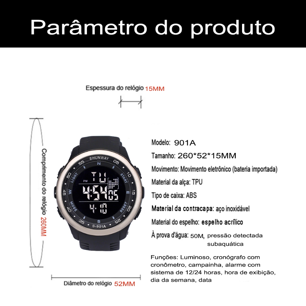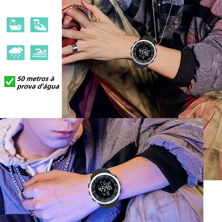 Relógio Masculino Luxo A Prova D Água De Silicone Digital Original Esportivas Cronômetro Prata