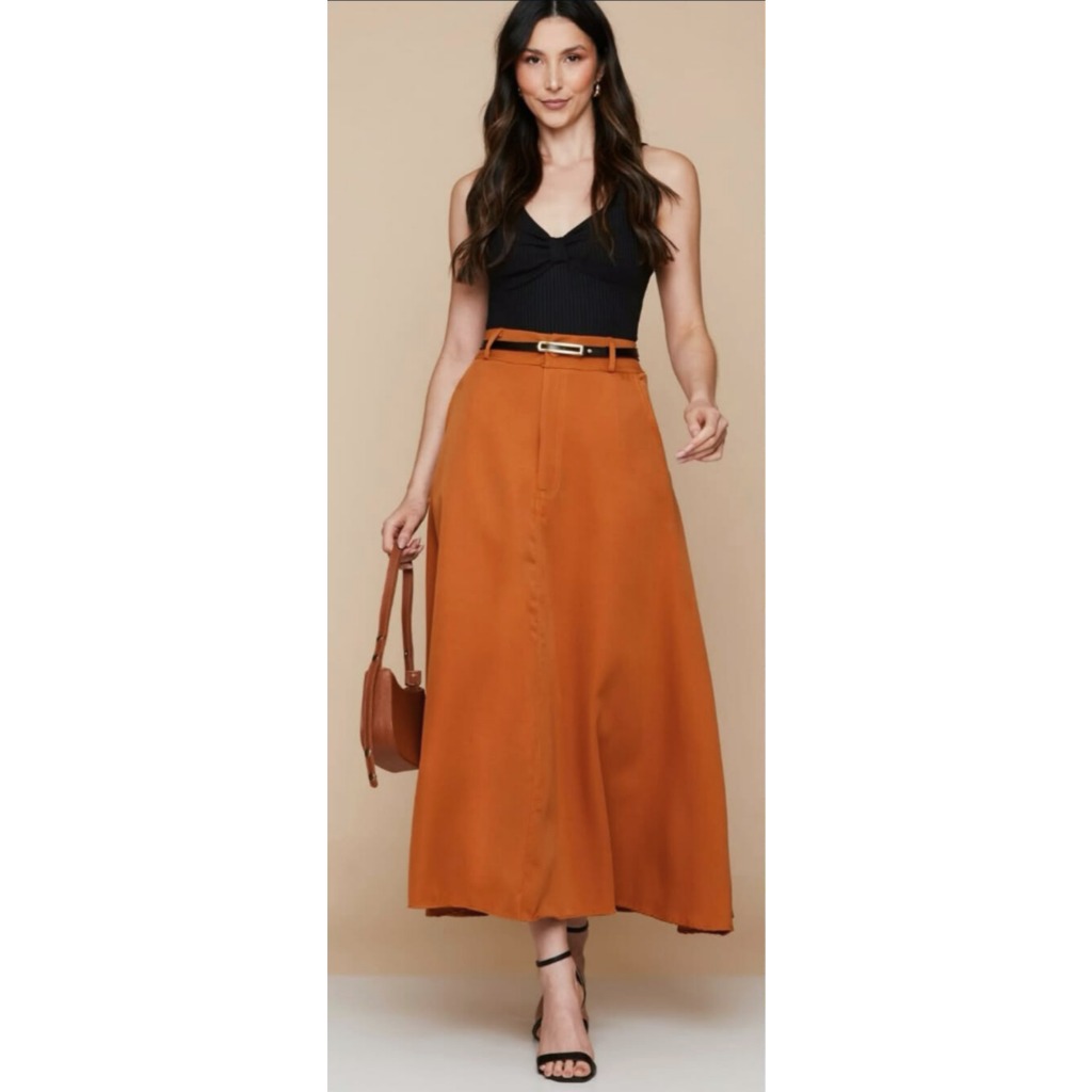 Saia Longa Alfaiataria Moda Evangélica Com Cinto Tendencia Cintura Alta