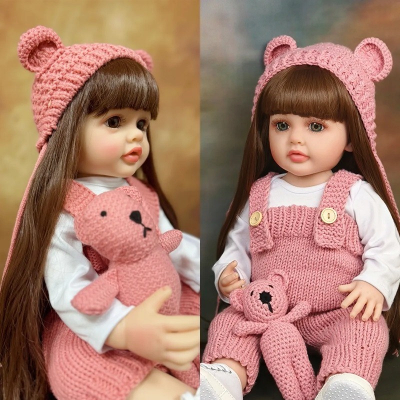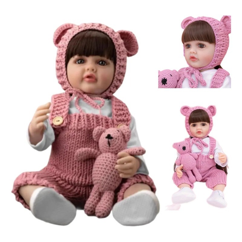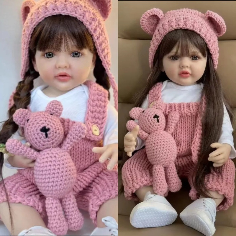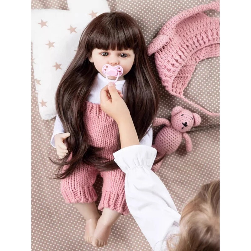 Bebê Reborn Boneca Menina Realista Completa Promoção Mamãe Bolsa Bonecas 100% 55cm com Acessórios Pode Banho Com Acessór