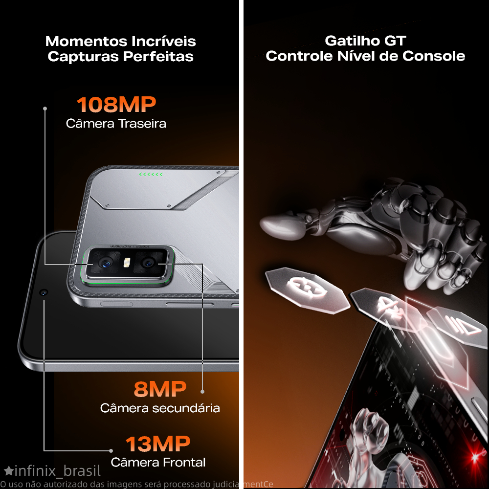 Celular Infinix GT 30 Pro 12GB+256B–Até 24GB de RAM Extendida–Dimensity 8350 Ultimate Câmera de 108MP NFC