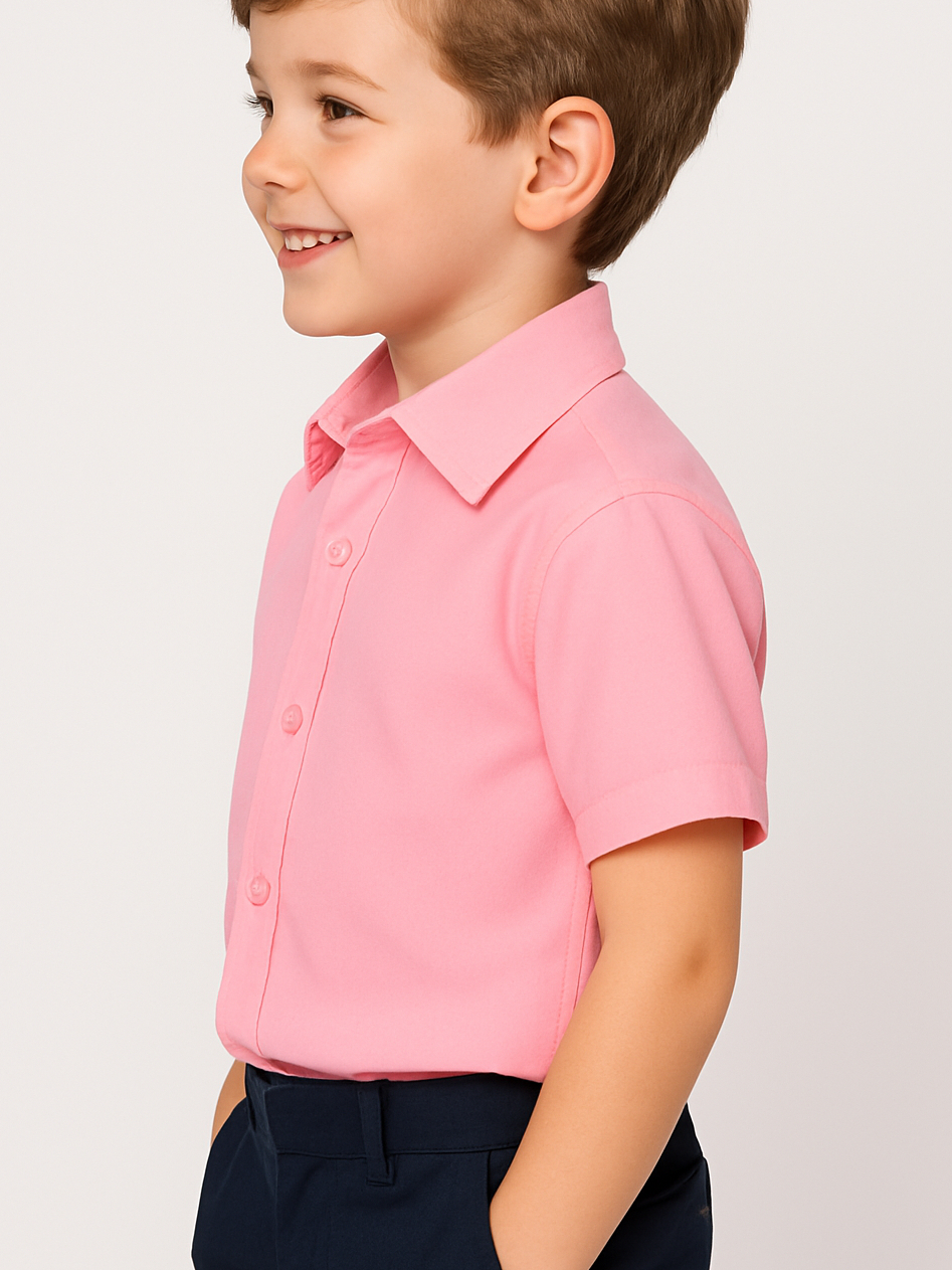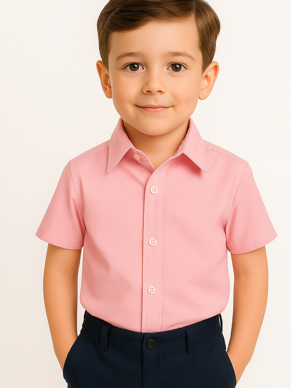 Camisa Social Infantil Rosa Bebê – Manga Curta, Elegante e Fresca | Tamanhos 2 a 10