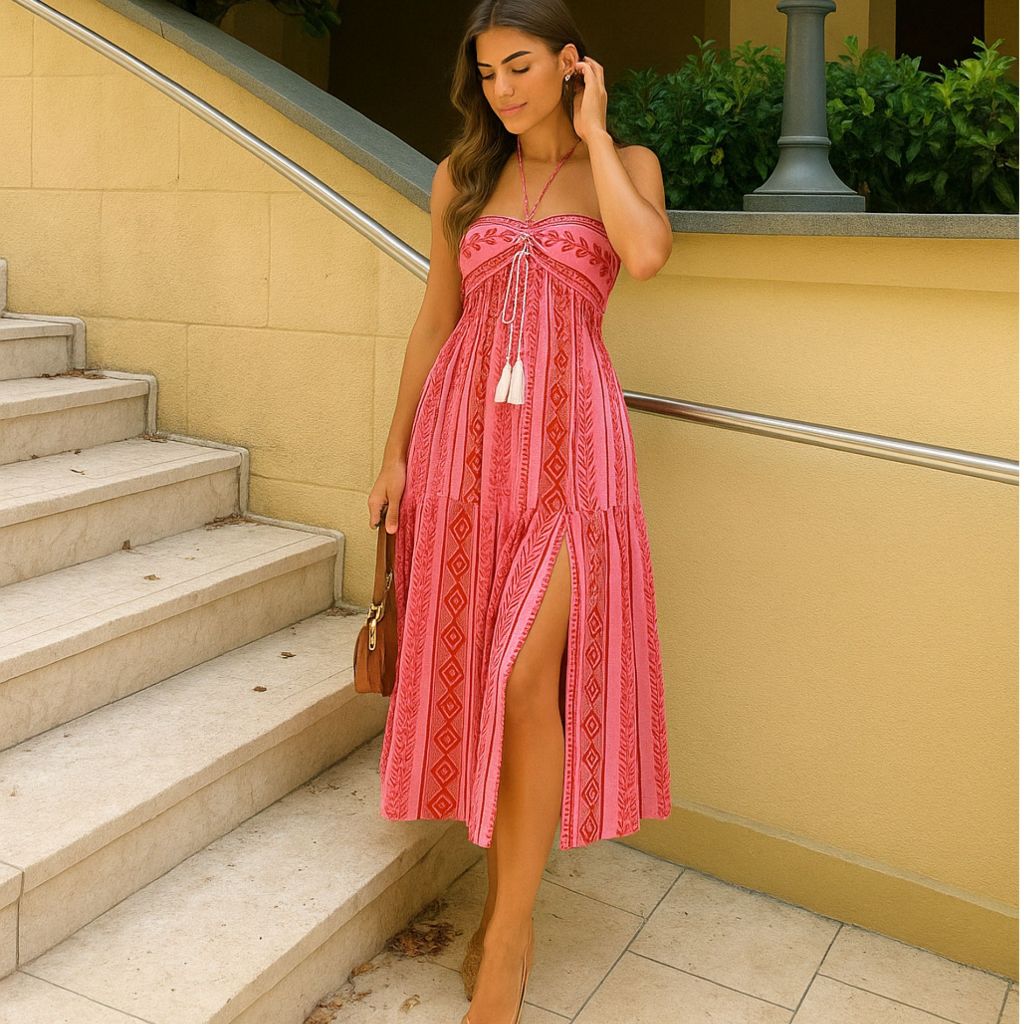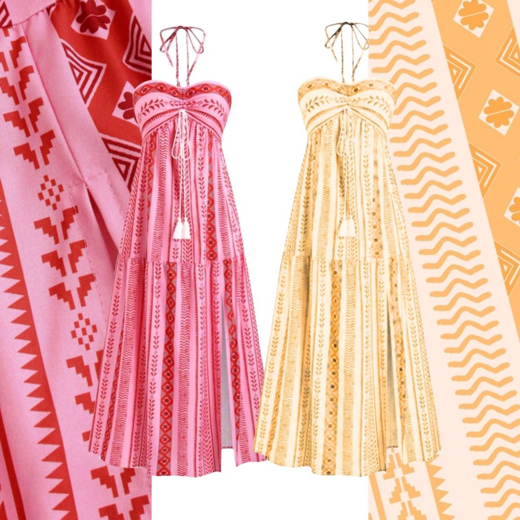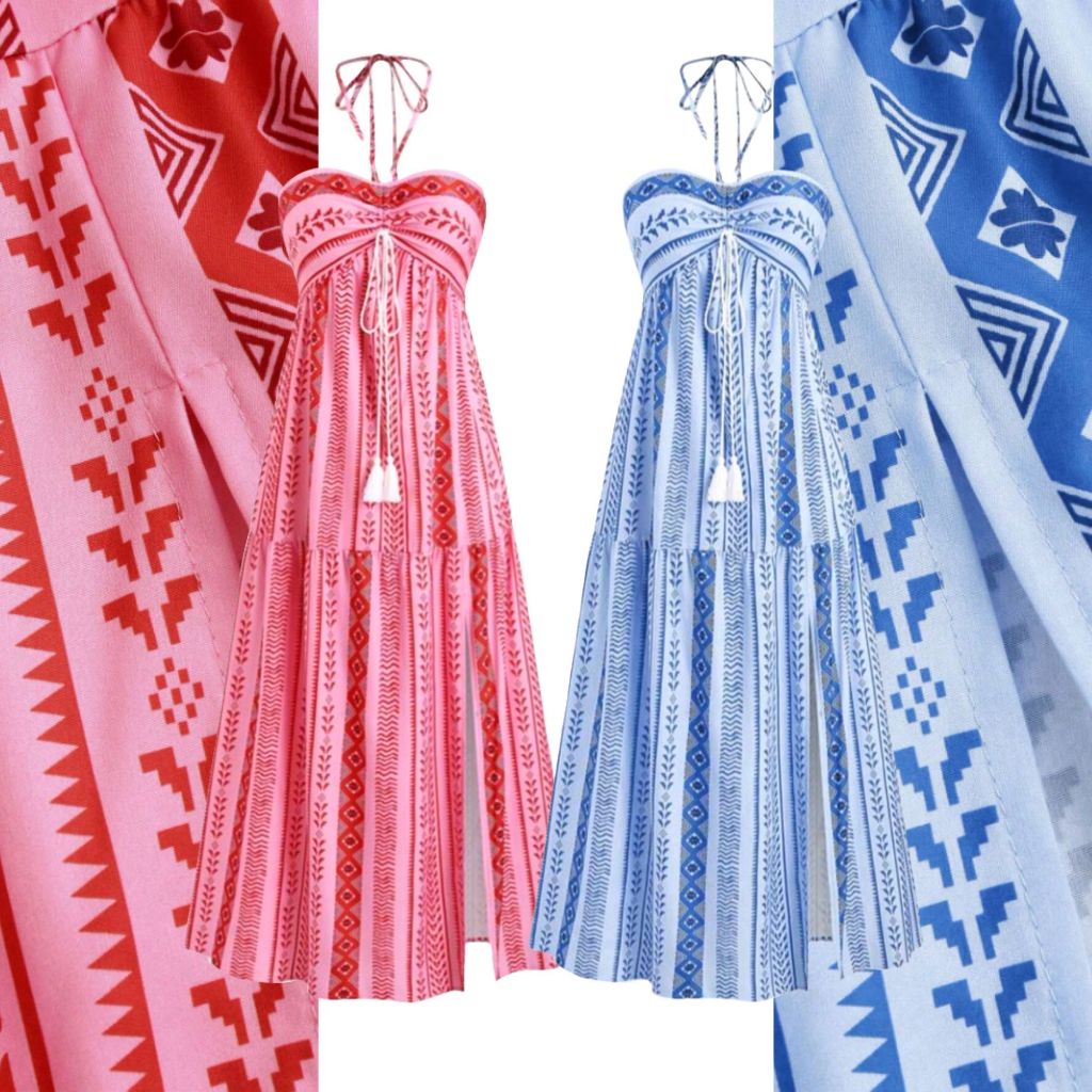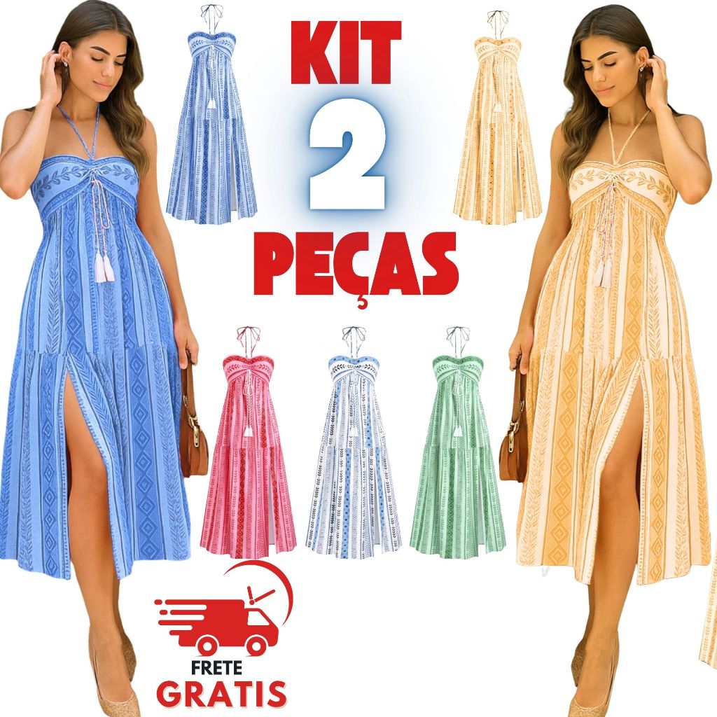 Kits de 2 Vestidos Boho Tribal Verão Tomara que Caia, Sem Bojo, Costas com Lastex, Vestido MIDI
