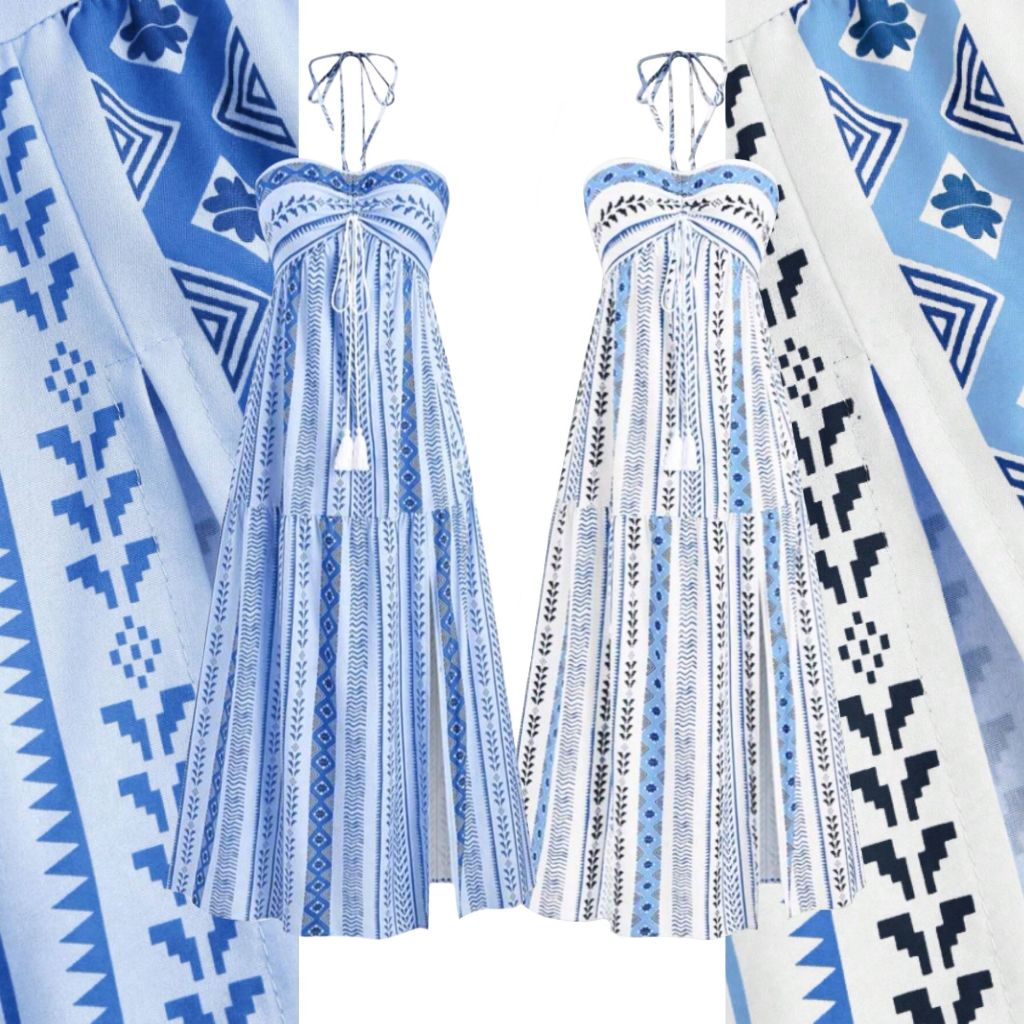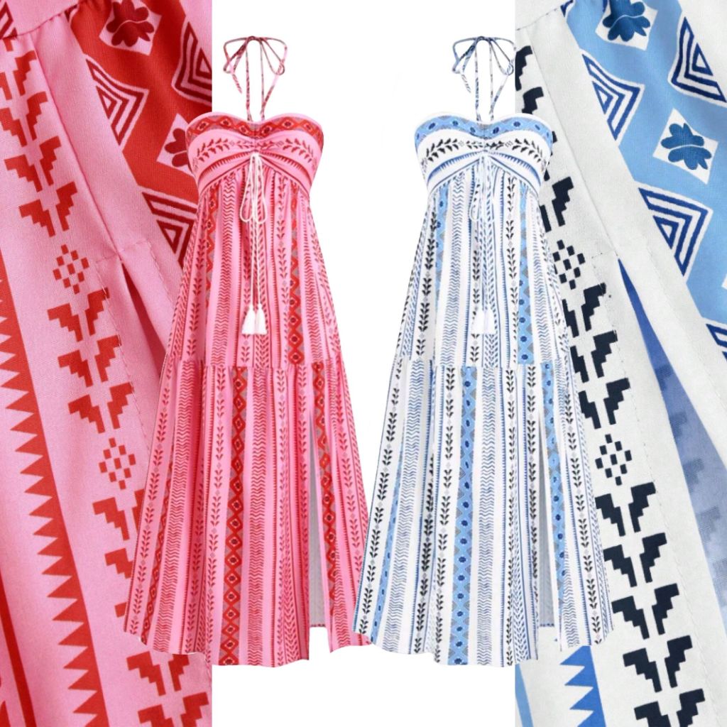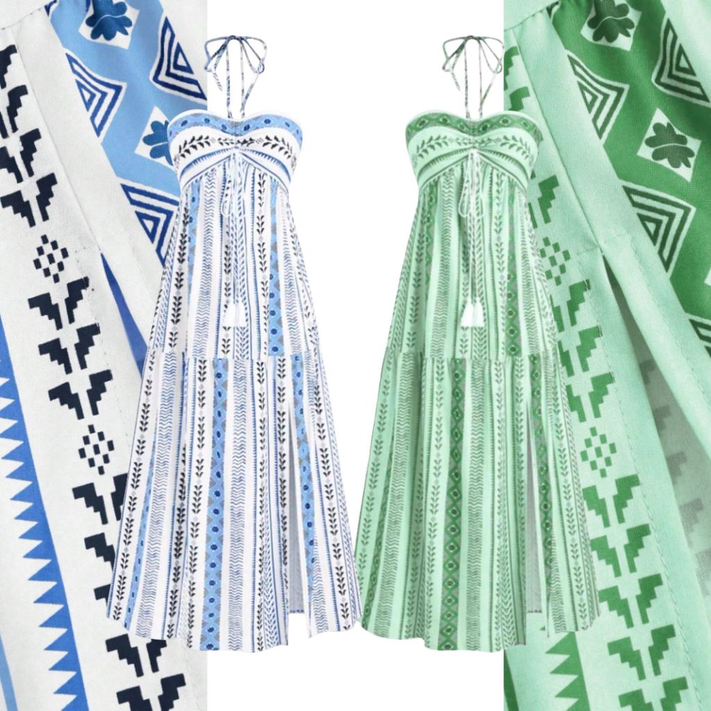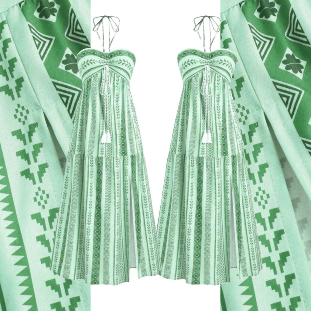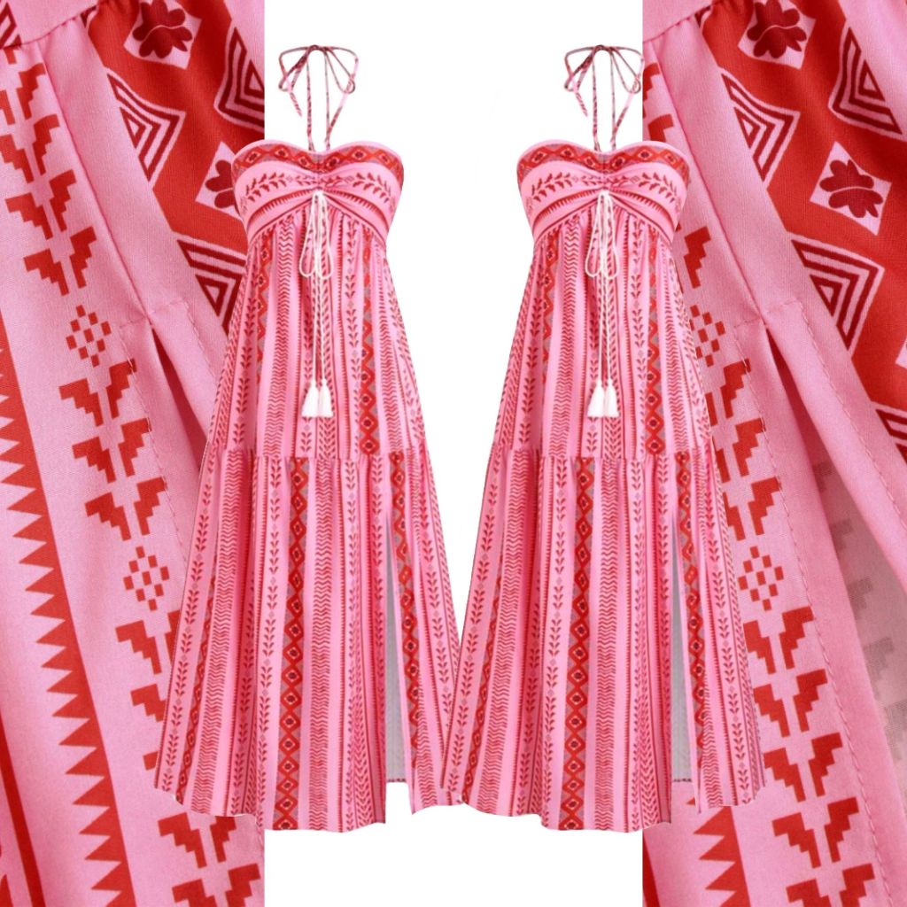 Kits de 2 Vestidos Boho Tribal Verão Tomara que Caia, Sem Bojo, Costas com Lastex, Vestido MIDI