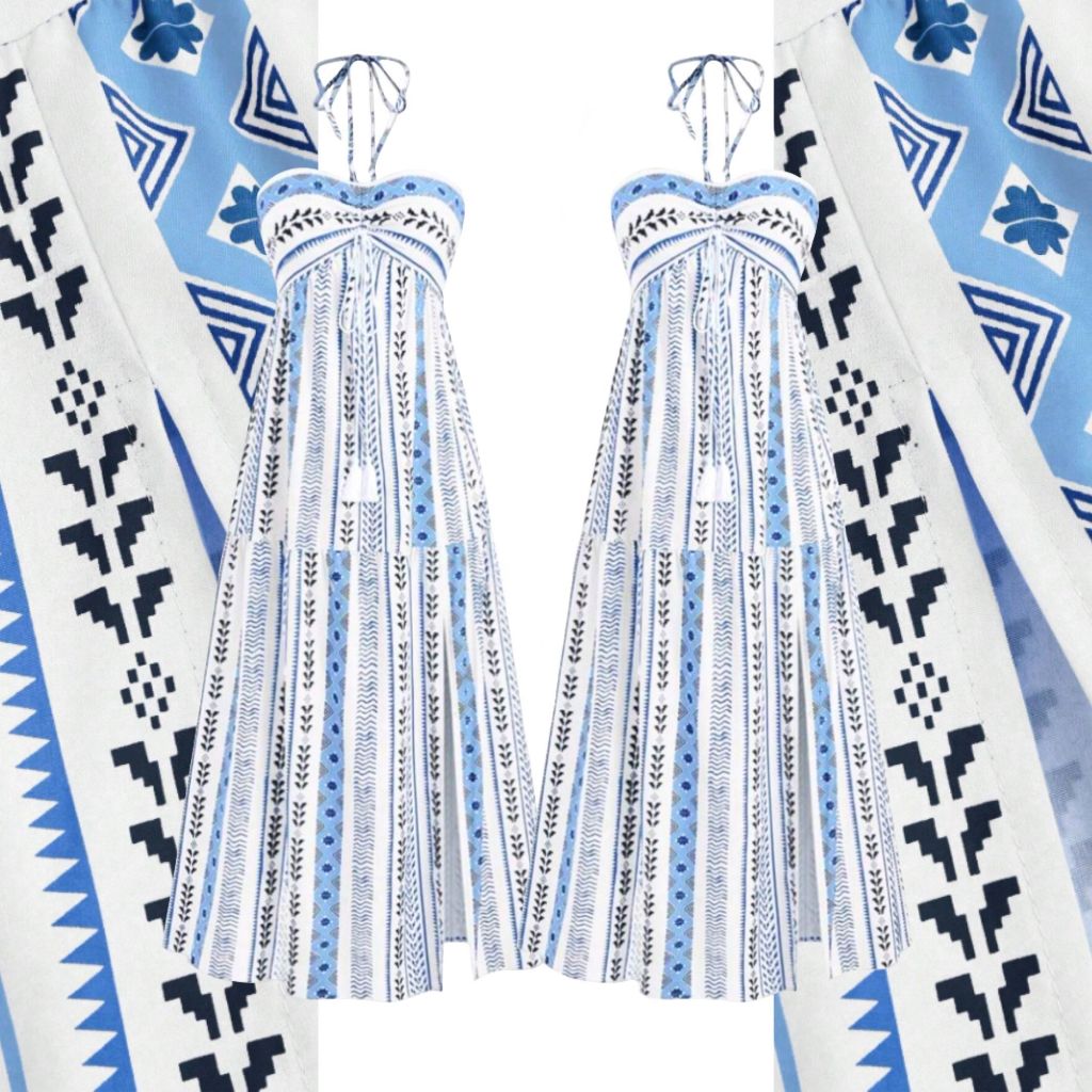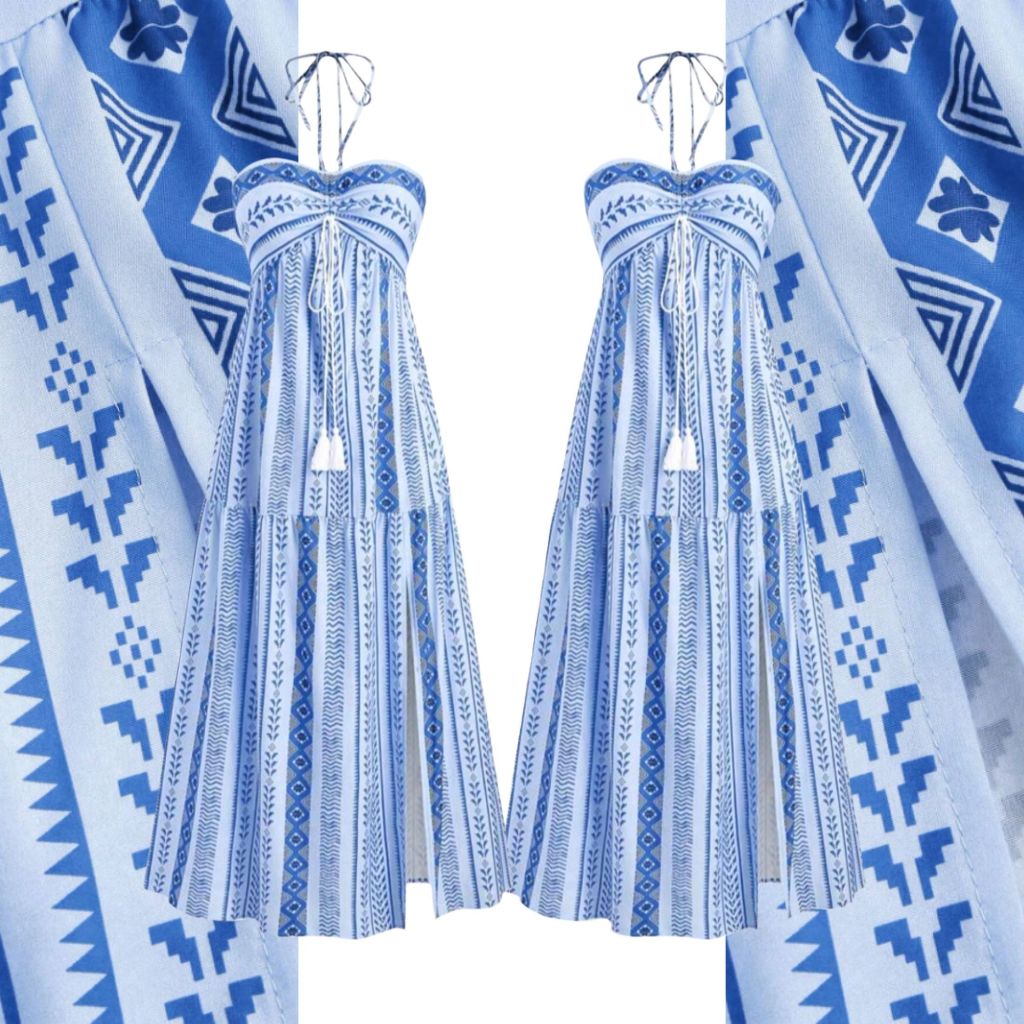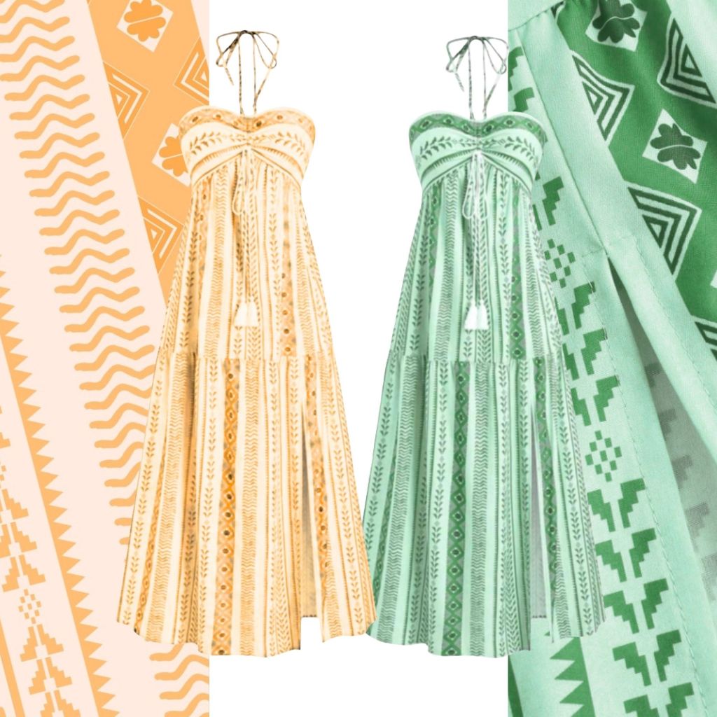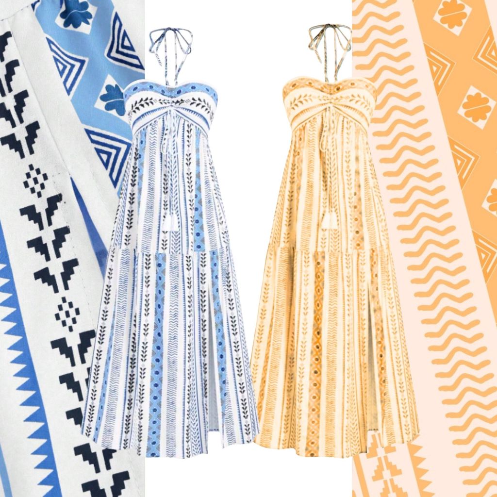 Kits de 2 Vestidos Boho Tribal Verão Tomara que Caia, Sem Bojo, Costas com Lastex, Vestido MIDI