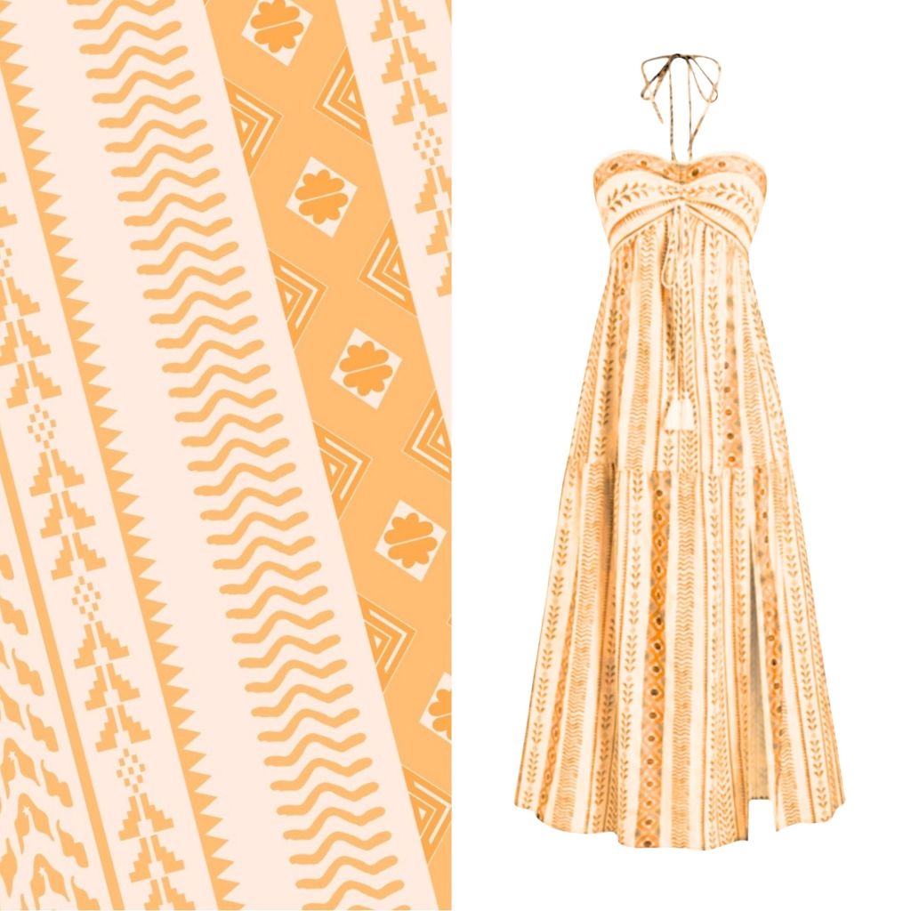 Vestido Boho Tribal Feminino Saia Flared, Tomara que Caia, Sem Bojo- Verão midi