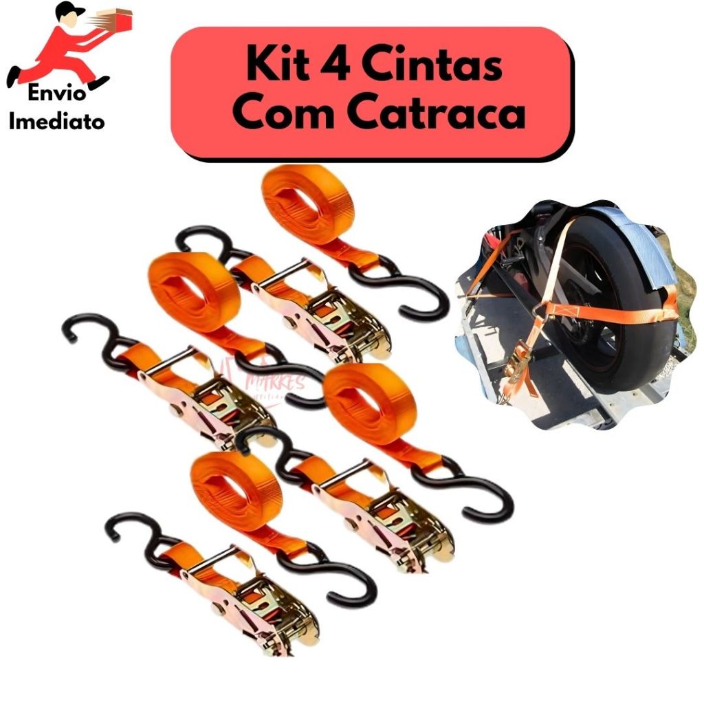 kit 4 Cinta Catraca Para Amarrar Carga Moto Mala Moveis 60 kg 2,5 CM x 4,5 M Ajustável