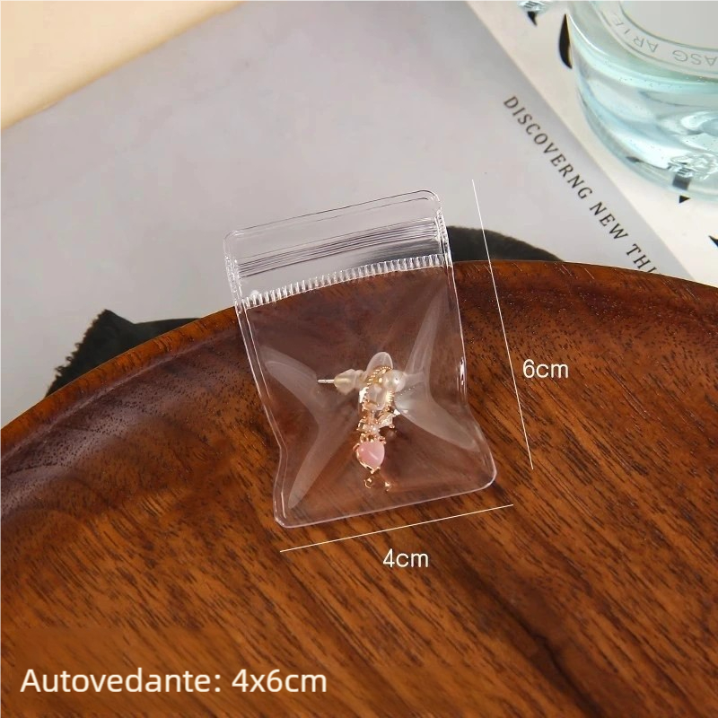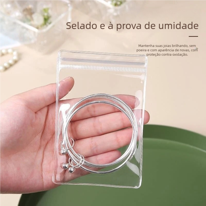 Saco de Joia PVC Transparente com Zip Forte - Seguro para Guardar Acessórios