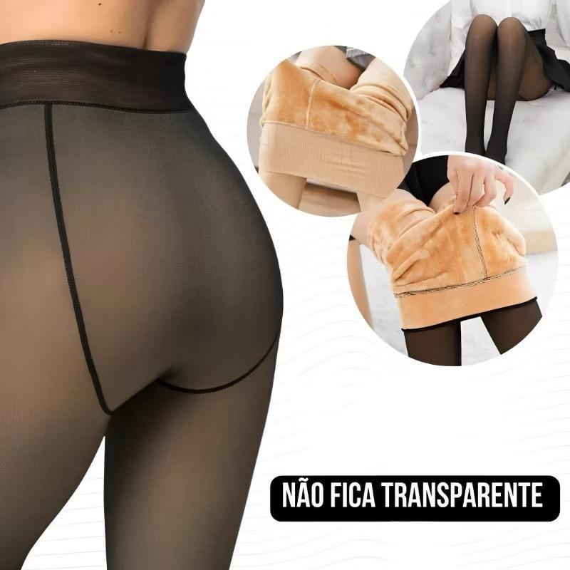 Meia Calça Com Forro de Pelúcia Preto Translucido/Transparente