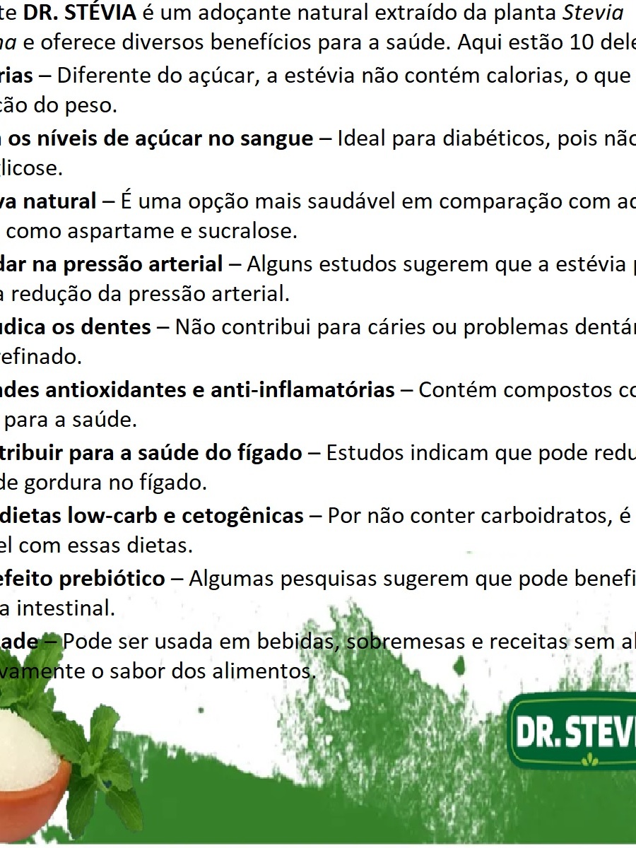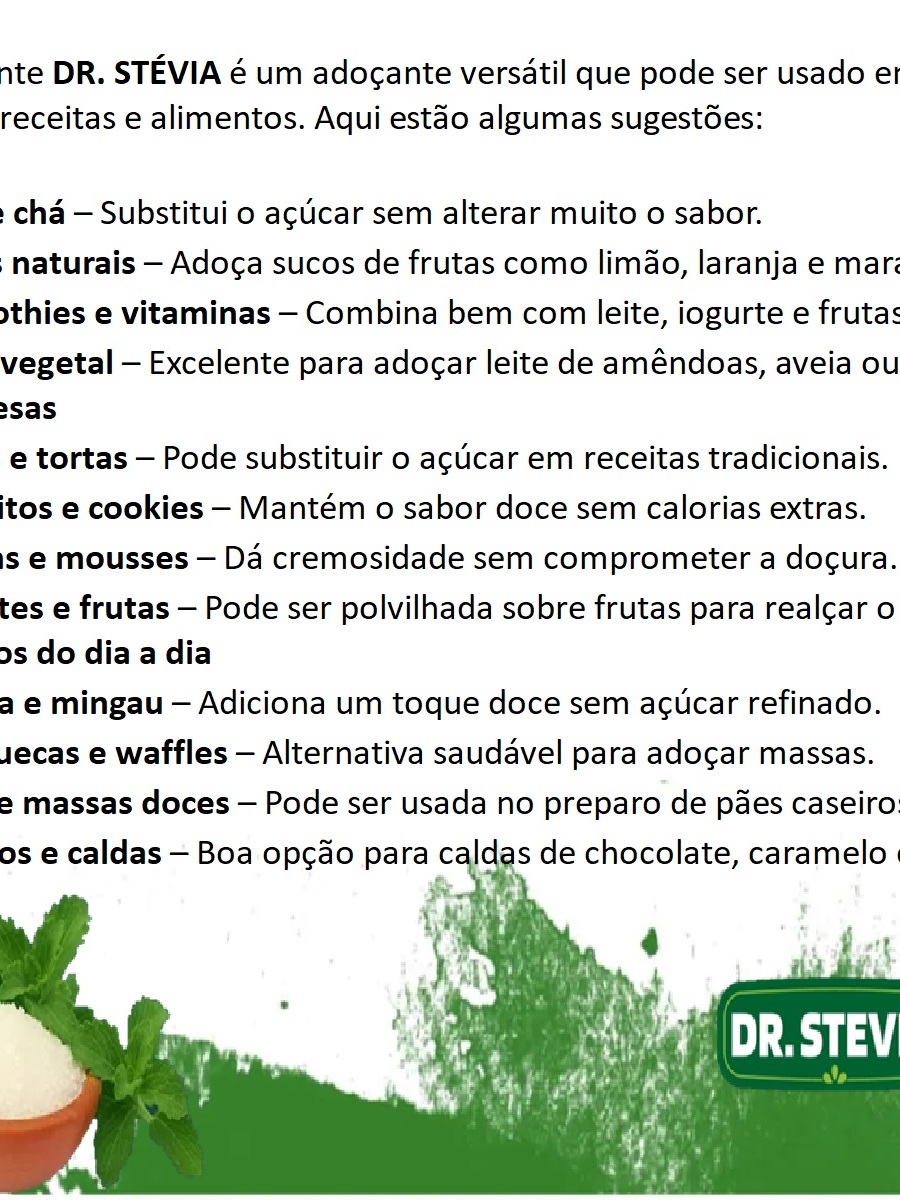 Adoçante Natural Stévia Dr.Stevia Sem Amargo sem glúten