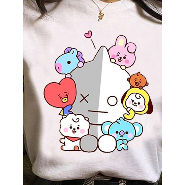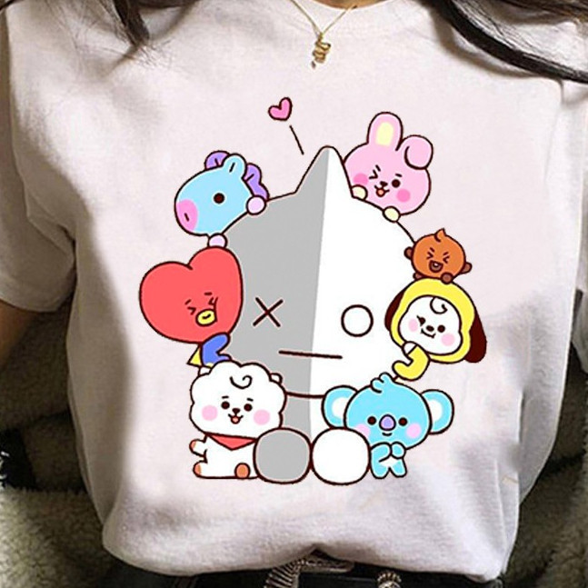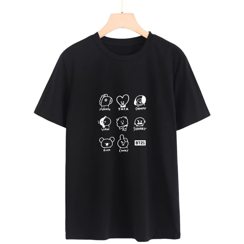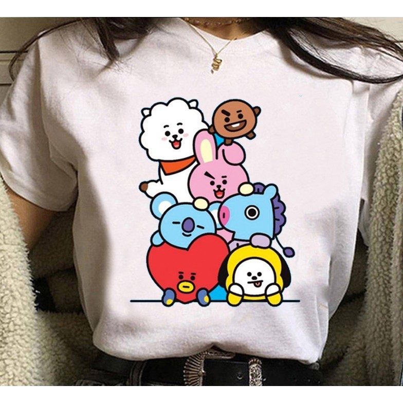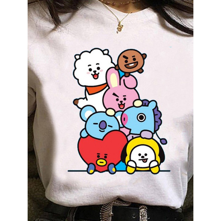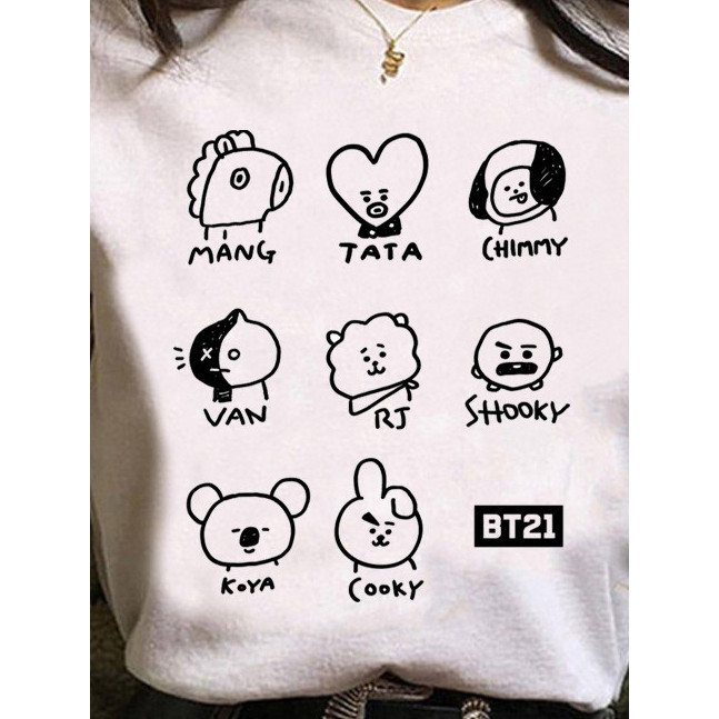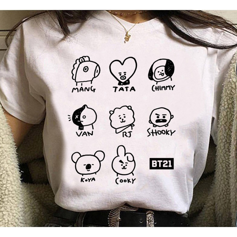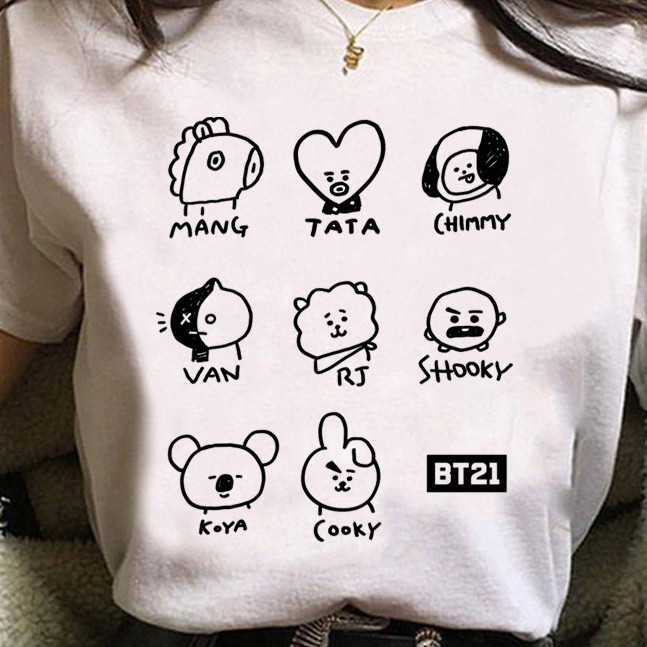 Camiseta Feminina Masculina BT21 BTS Tata Chimmy Cooky RJ Algodao Camisa Algodão Casual