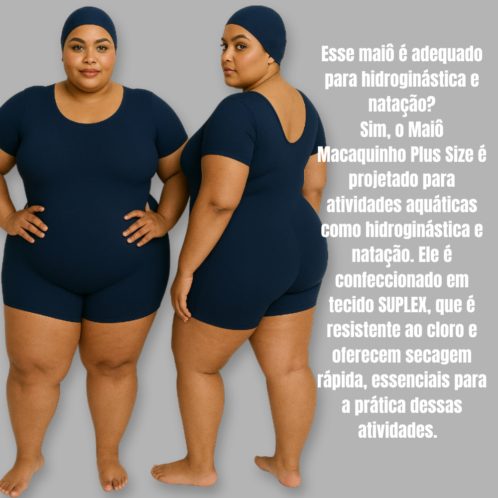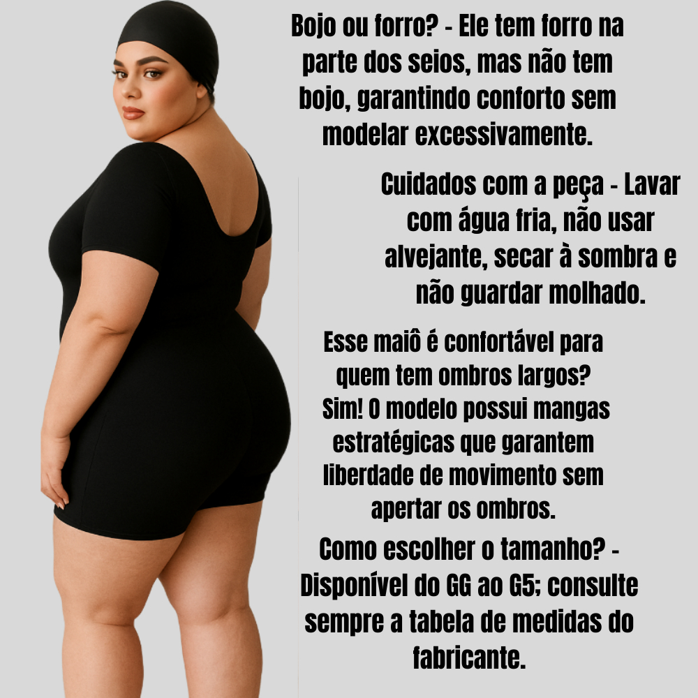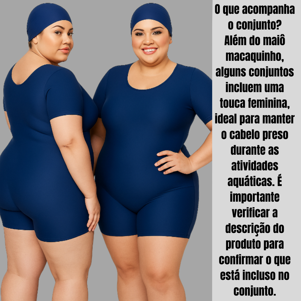 Maiô Macaquinho Plus Size com Manga – Natação & Hidroginástica Moda Evangélica + Touca Feminina