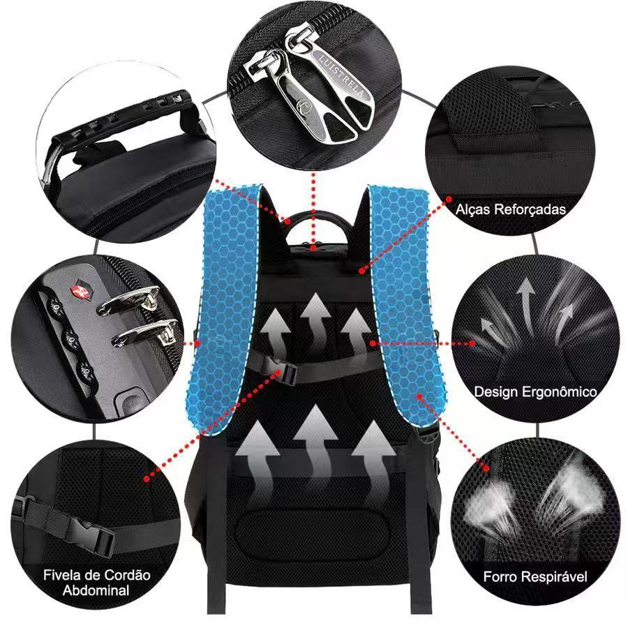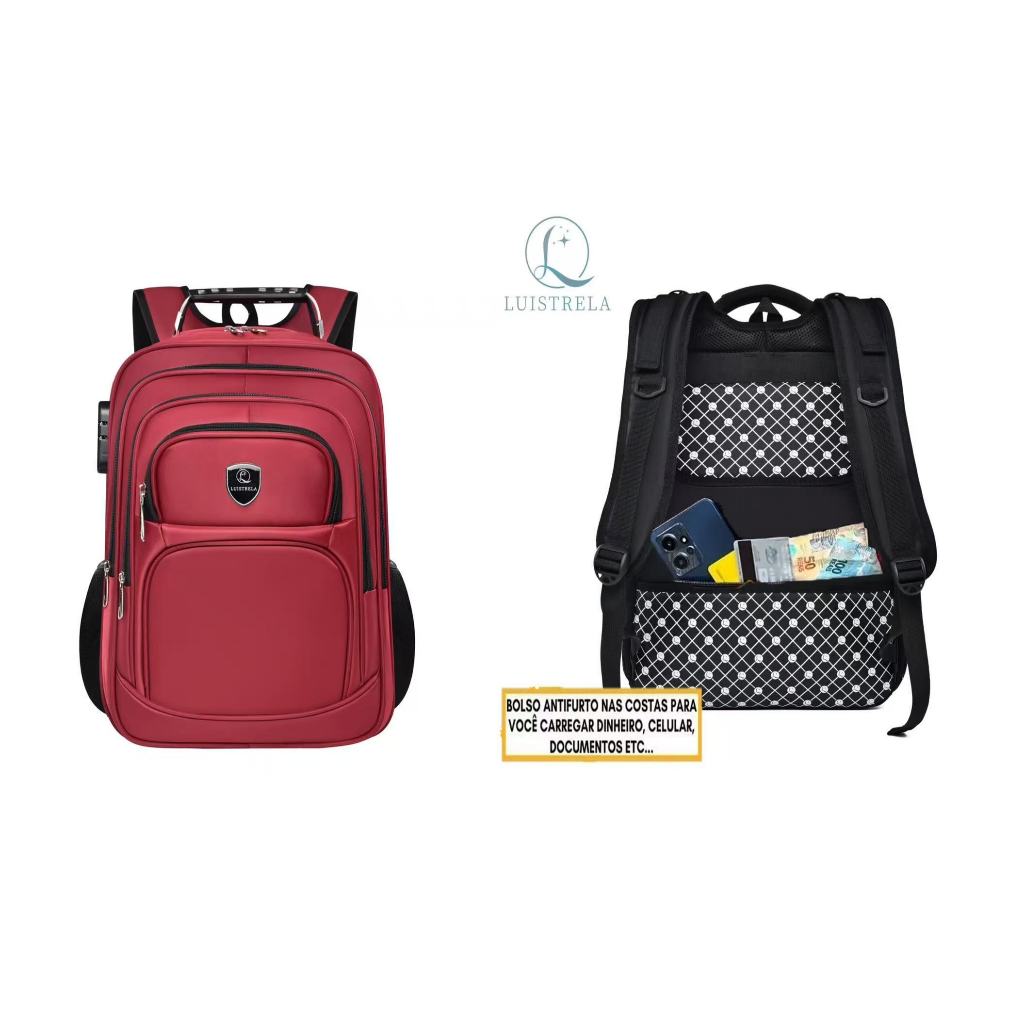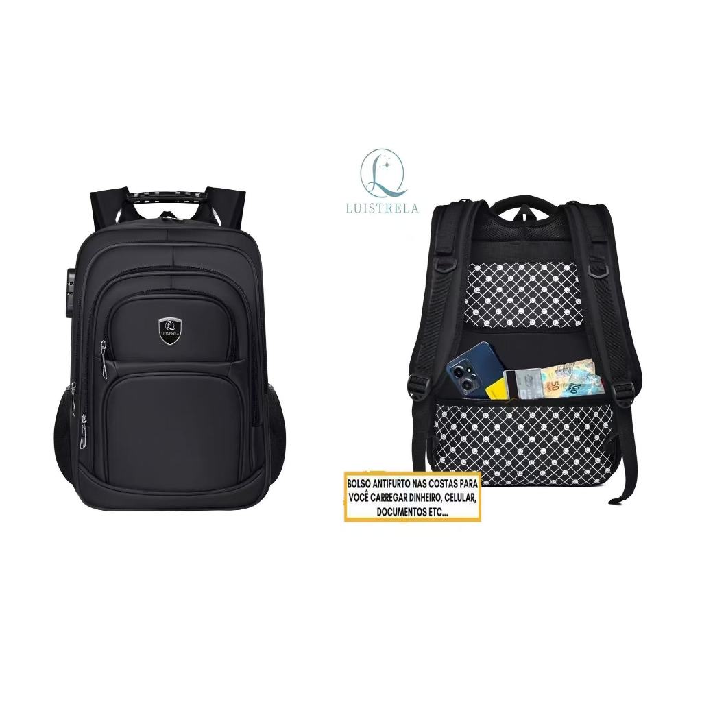 Mochila Masculina Anti-Furto Com Cadeado Bolso Nas Costas Reforçada Grande