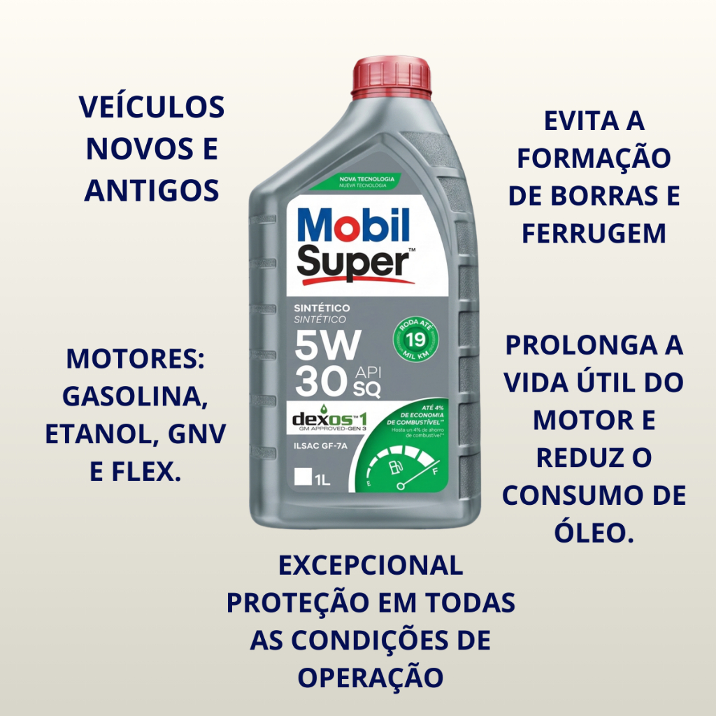 Óleo de motor Mobil Super 5w30 Dexos 1 API SQ Sintéico 1litro ILSAC GF-7A Original
