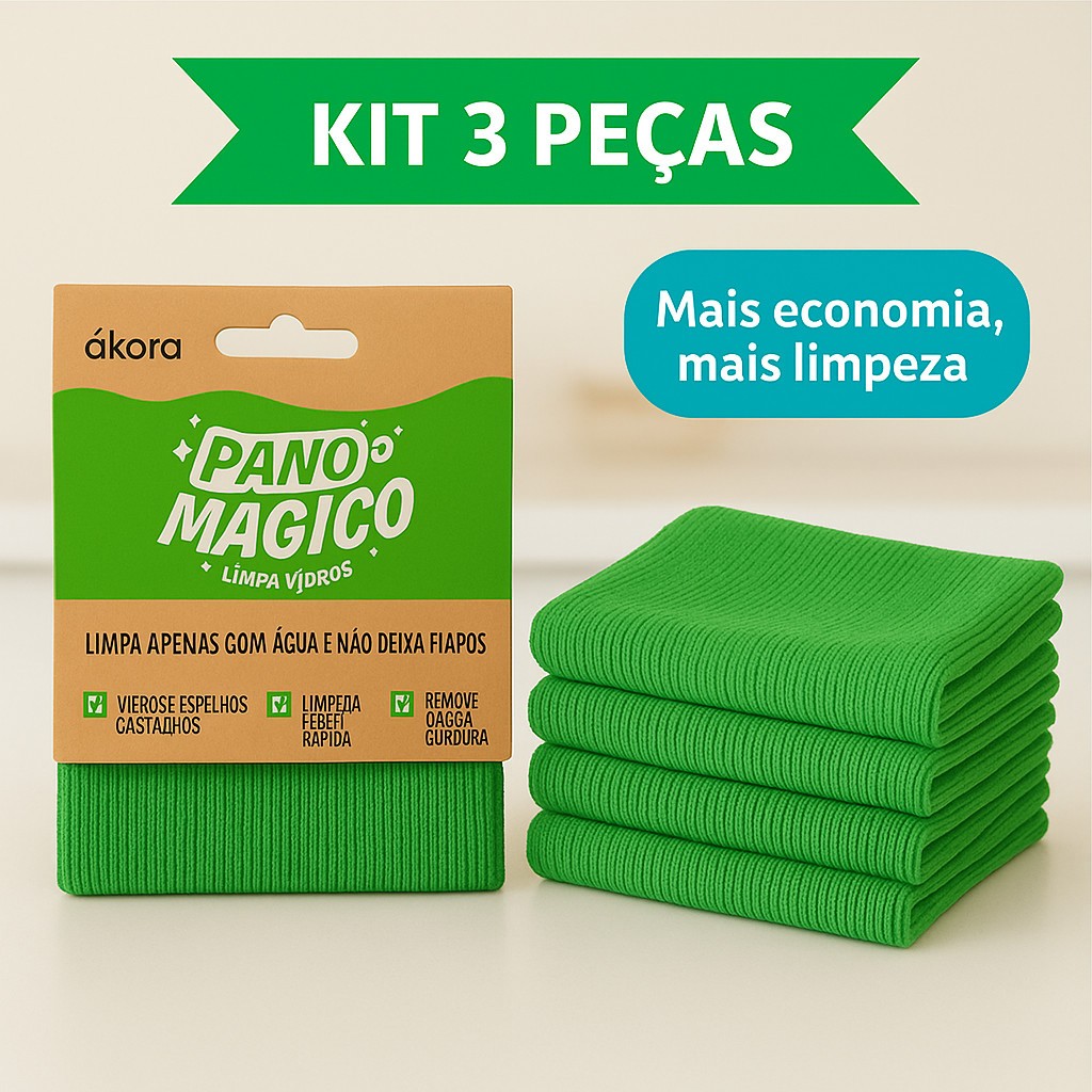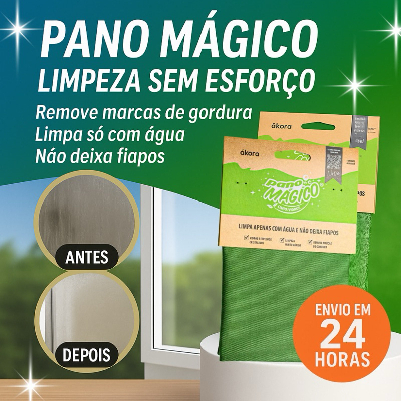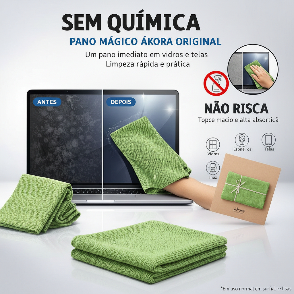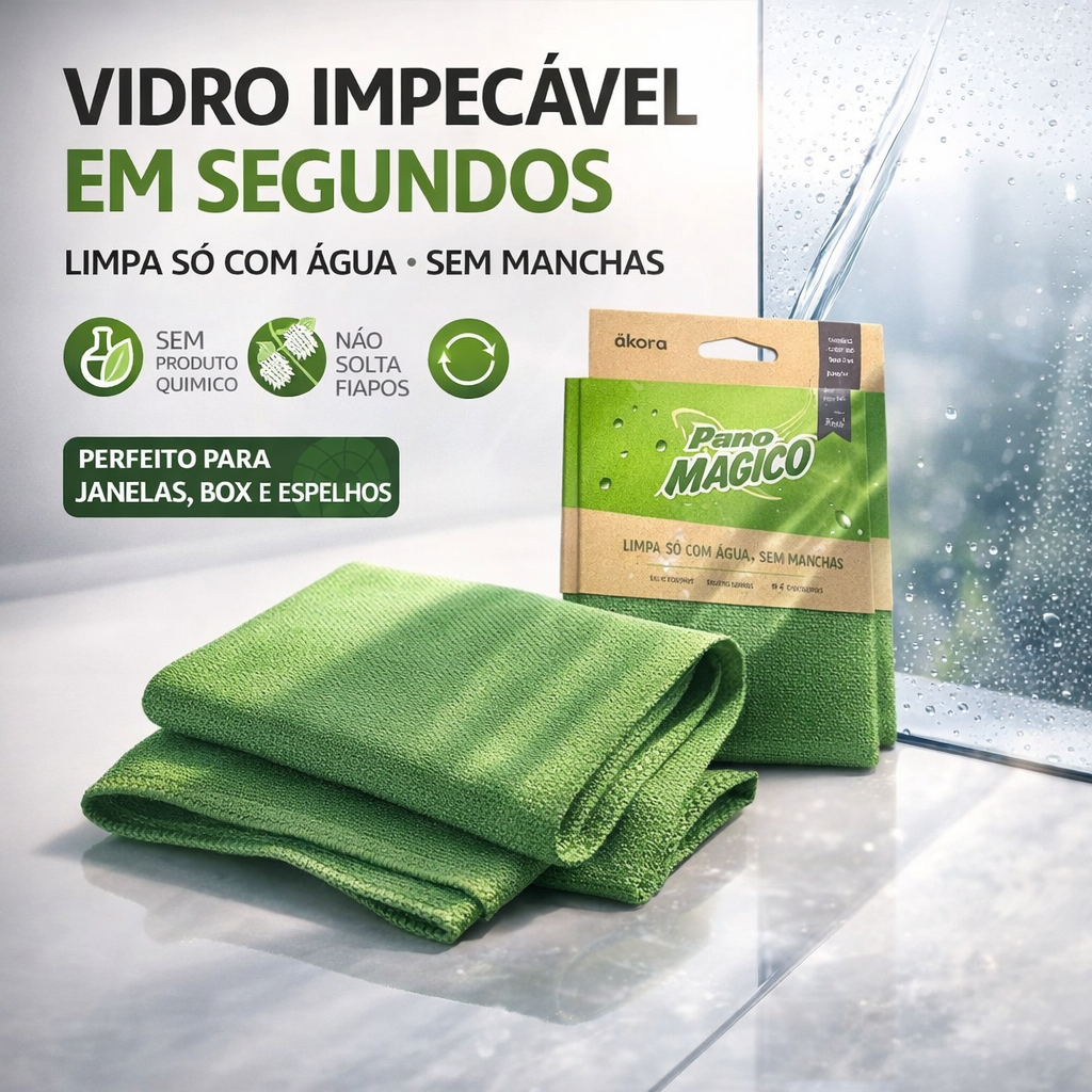Pano Limpa Vidros Ákora Original — Pano Mágico Multiuso (Poliéster + Poliamida) | Sem Produto Químico
