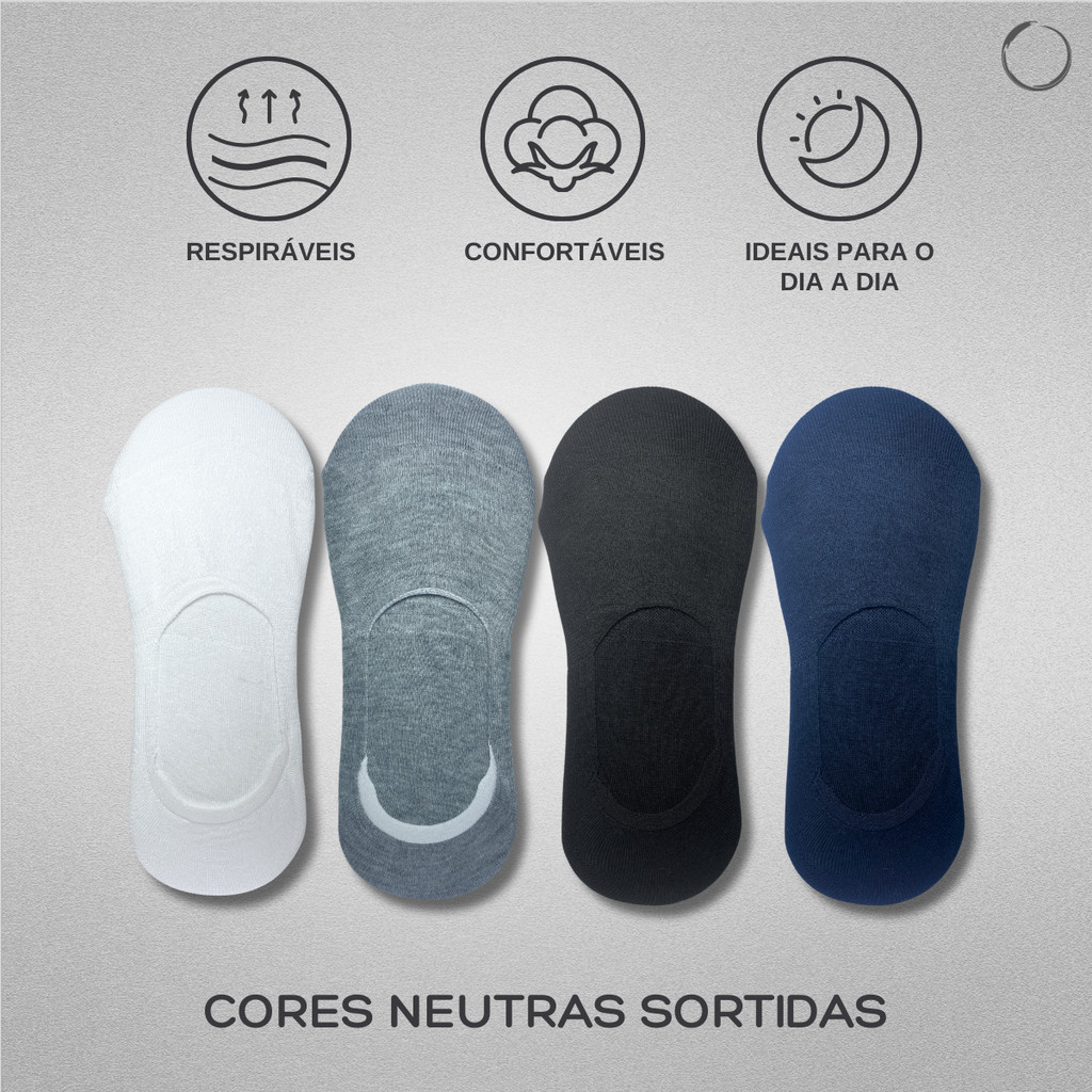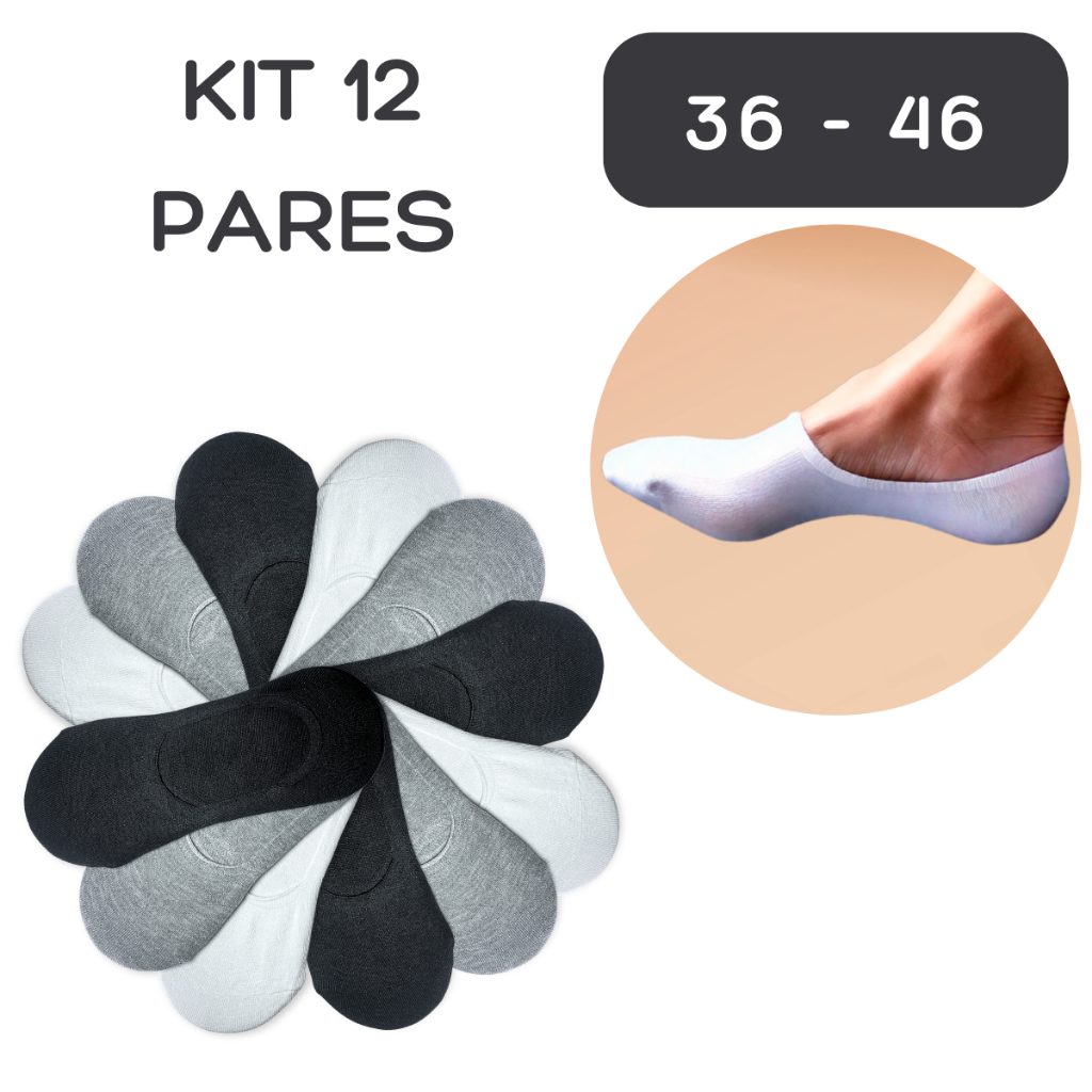 Kit Até 12 Pares Meia Invisível Unissex Respirável Premium Com Silicone Antiderrapante