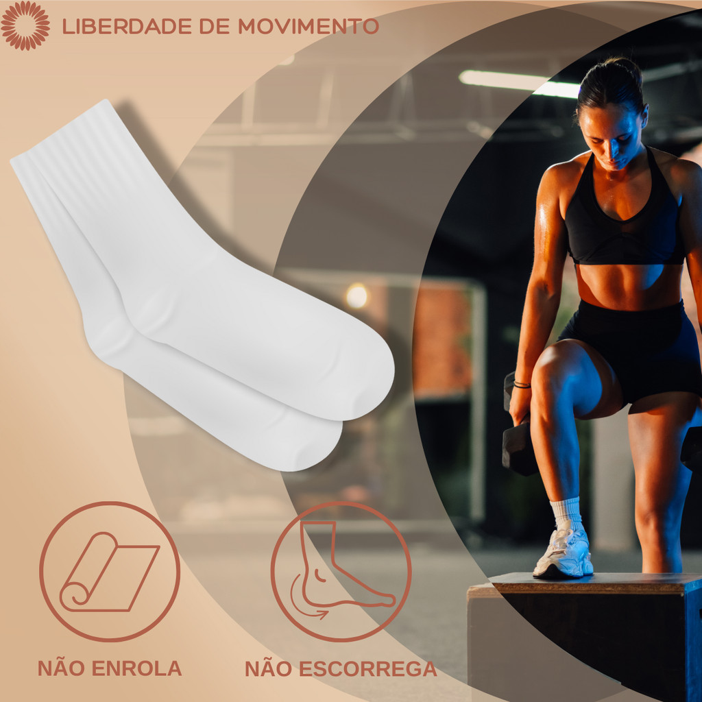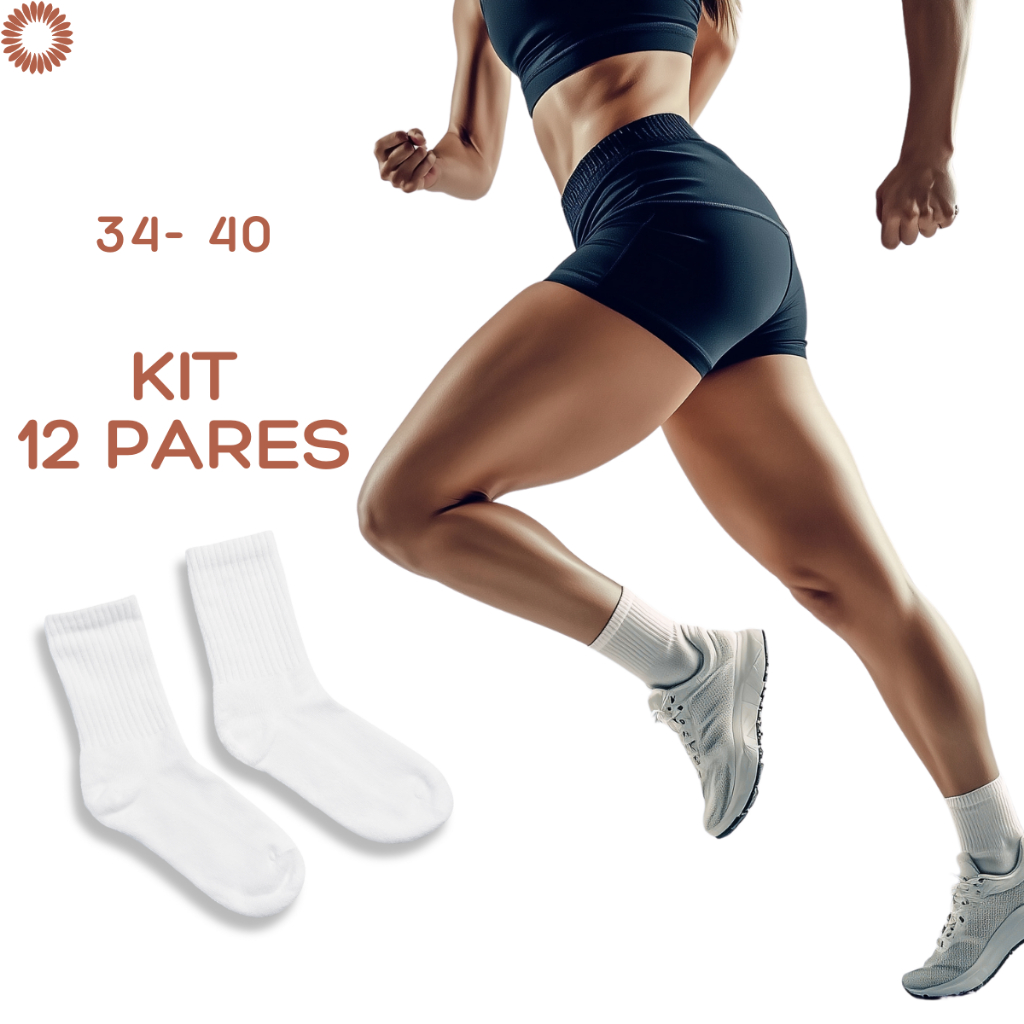 Kit Até 12 Pares Meia Feminina Cano Medio Alto Academia Fitness Respirável