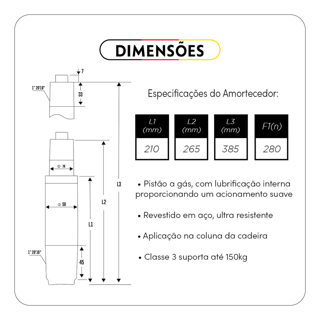 Kit Pistão A Gás Para Cadeira De Escritório Giratória 150kg