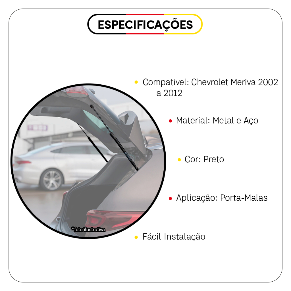 Par Amortecedor Tampa Traseira Chevrolet Meriva 2002 à 2012 Pistão à Gás Porta Malas Meriva