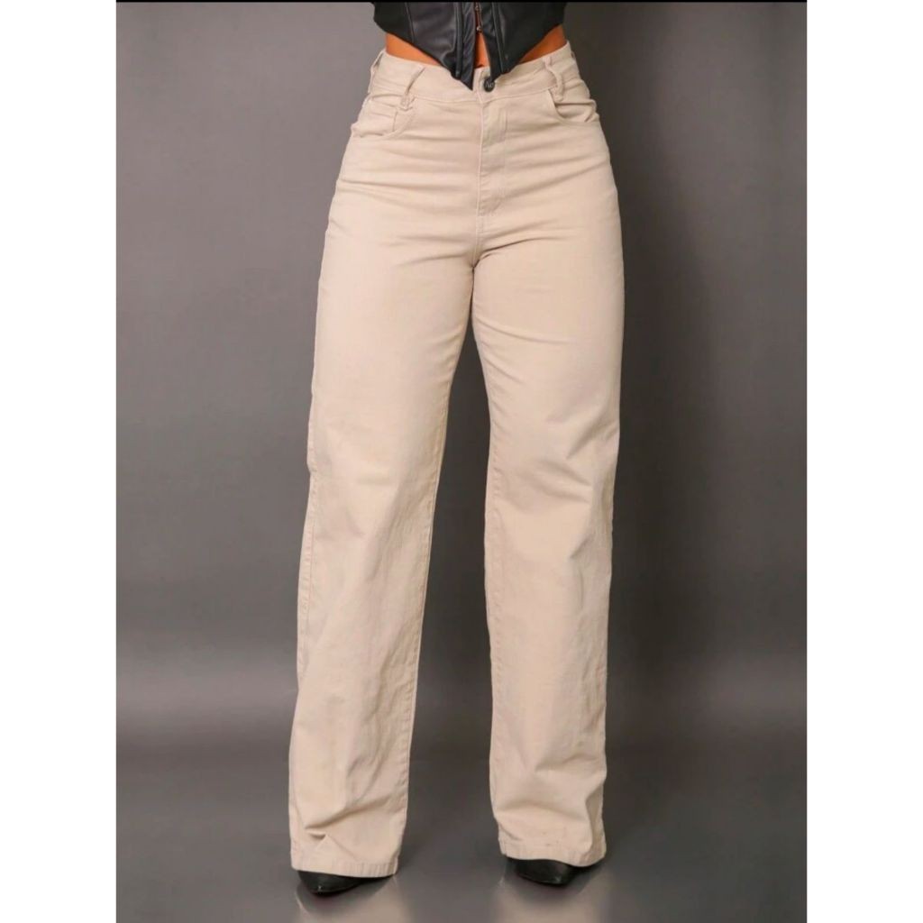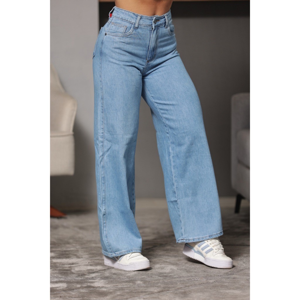 calça wid leg feminina Jeans Cintura Alta Cós Alto Lycra Grossa Rasgada Cinza Grafit Marmorizada