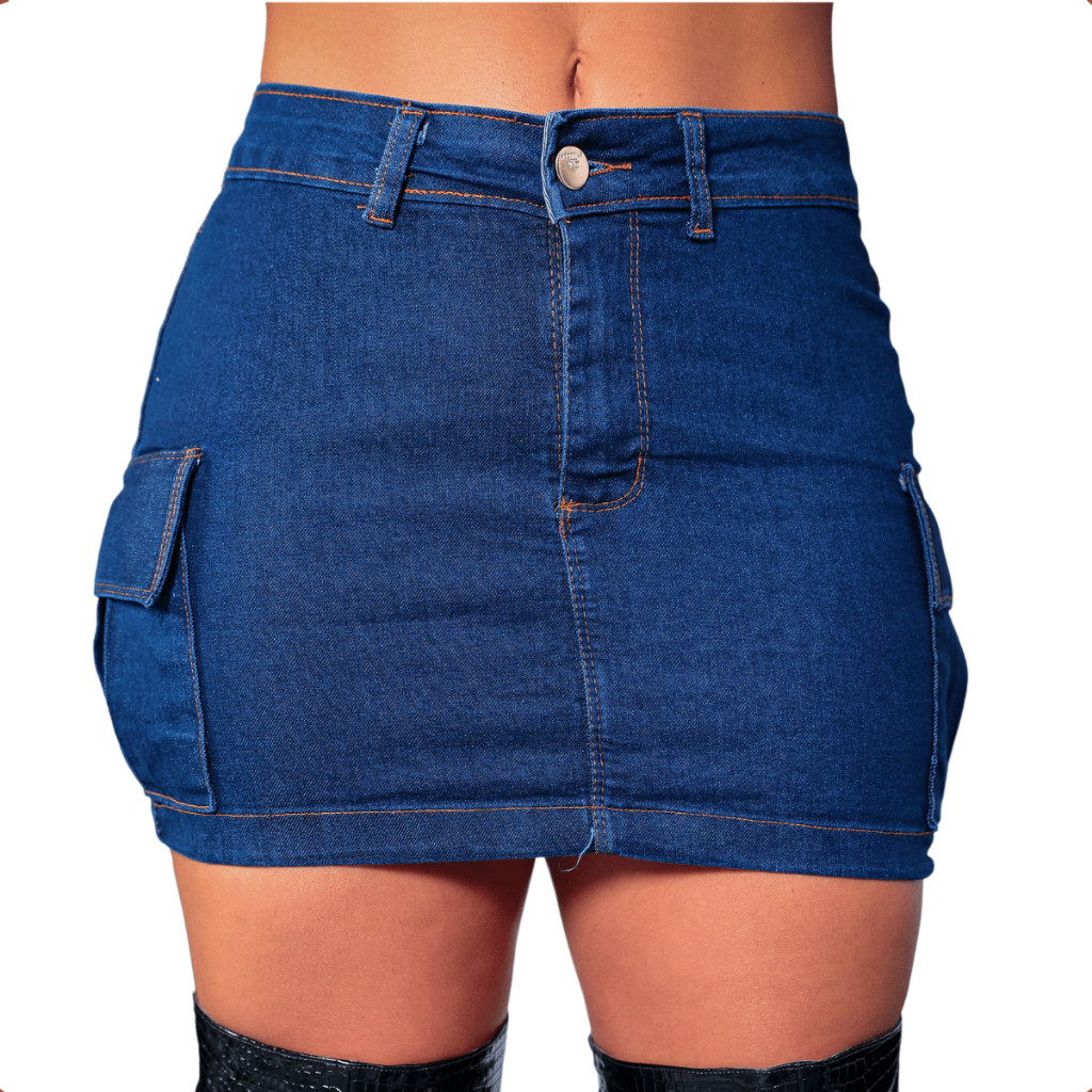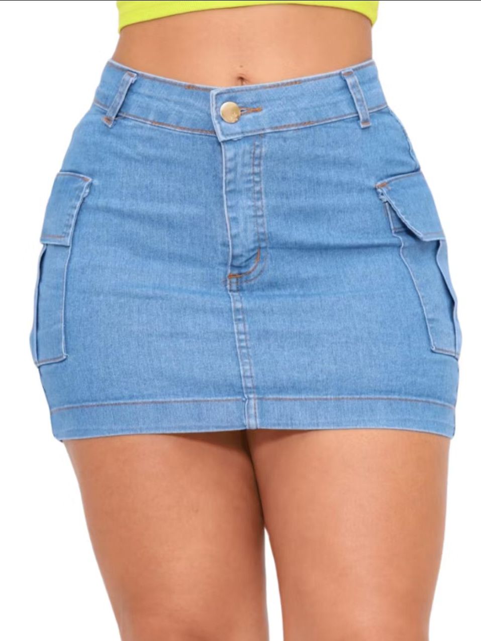 Saia Cargo Juvenil Infantil Jeans Curta Feminina Com Bolso Lateral Lycra Menina Criança