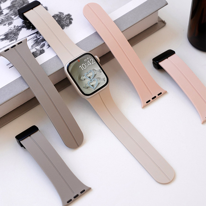 Pulseira De Silicone Magnética Para Relógio Apple Watch Ultra SE 3 2 Series 11 10 9 8 7 6 IWatch 49 46 45 44 42 41 40mm