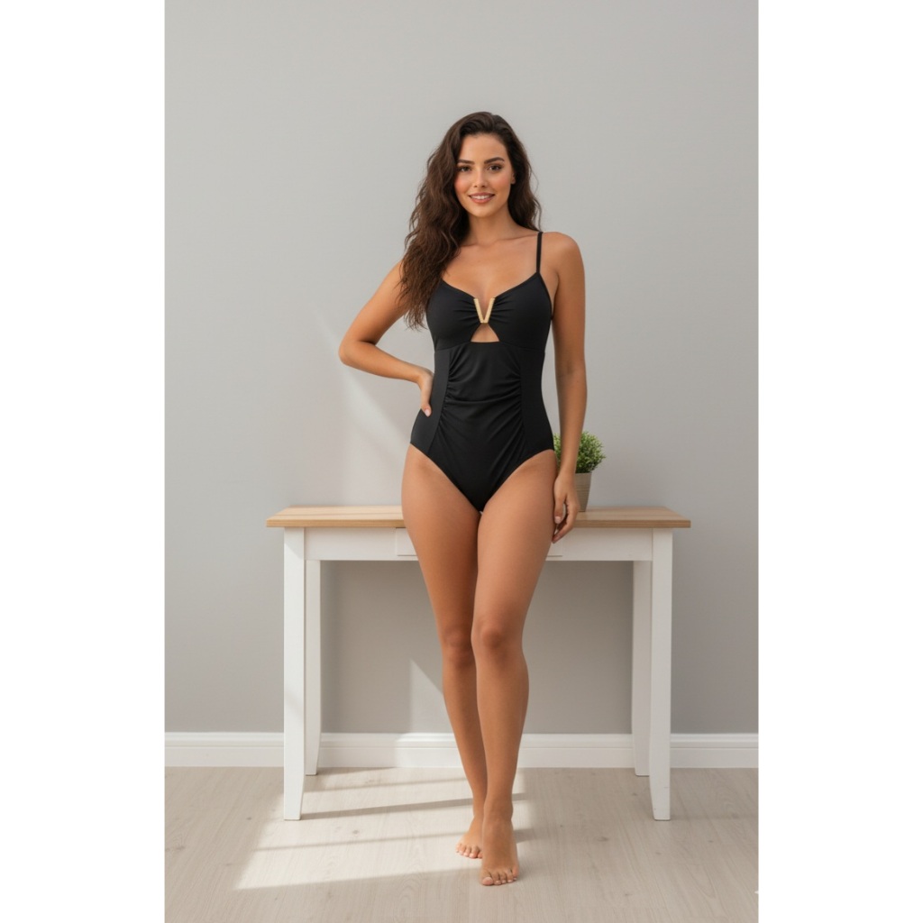 Body Feminino Elegante com Decote V abertura abaixo e Detalhe Dourado plastico – Body Casual #1