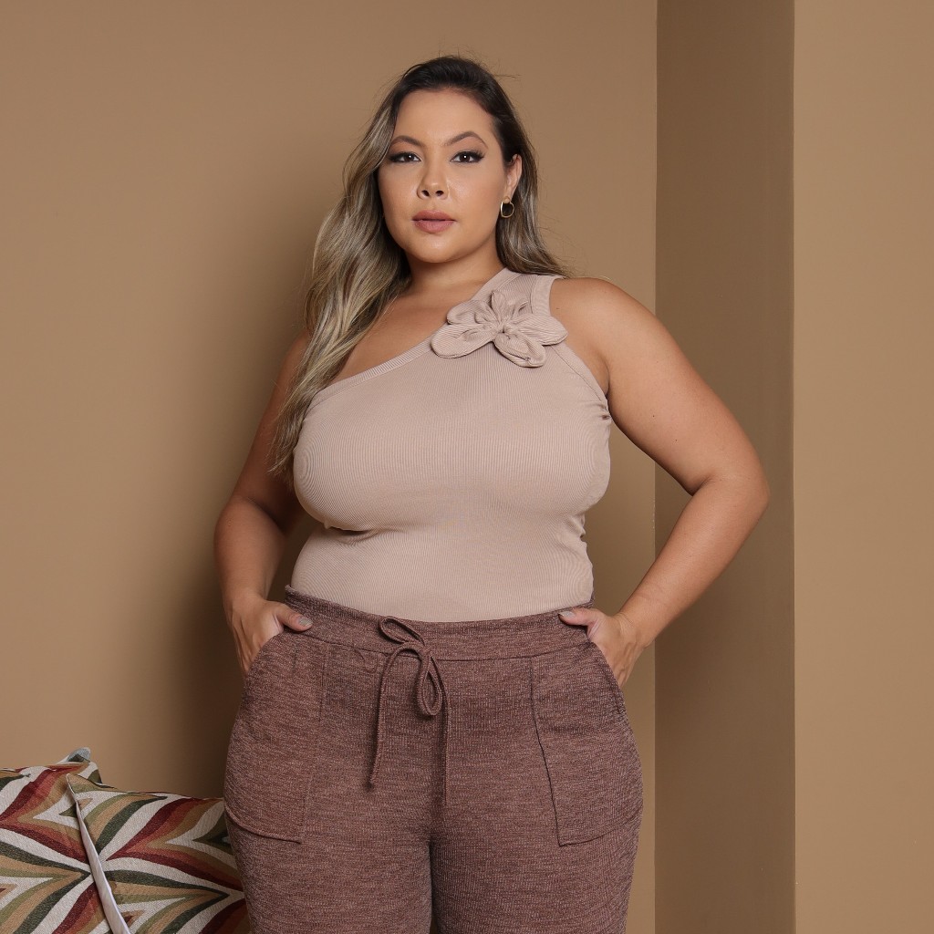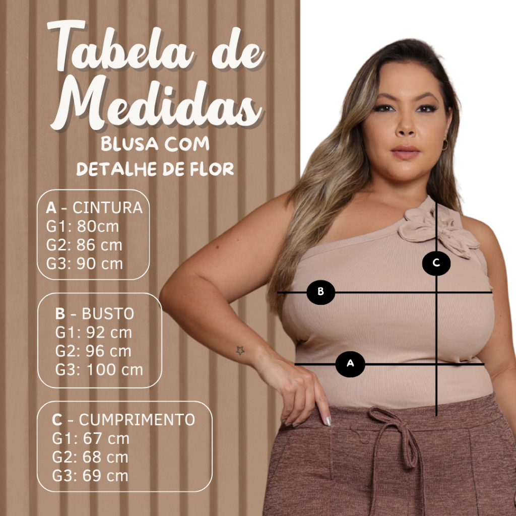 BLUSA PLUS SIZE MULA MANCA RIBANA COM FLOR