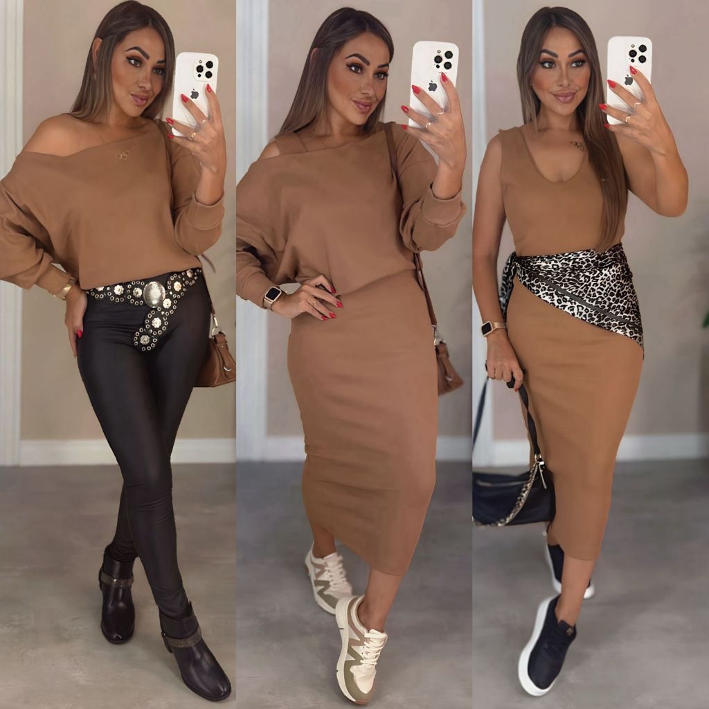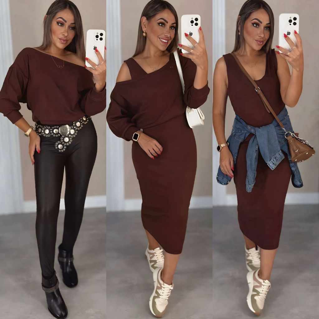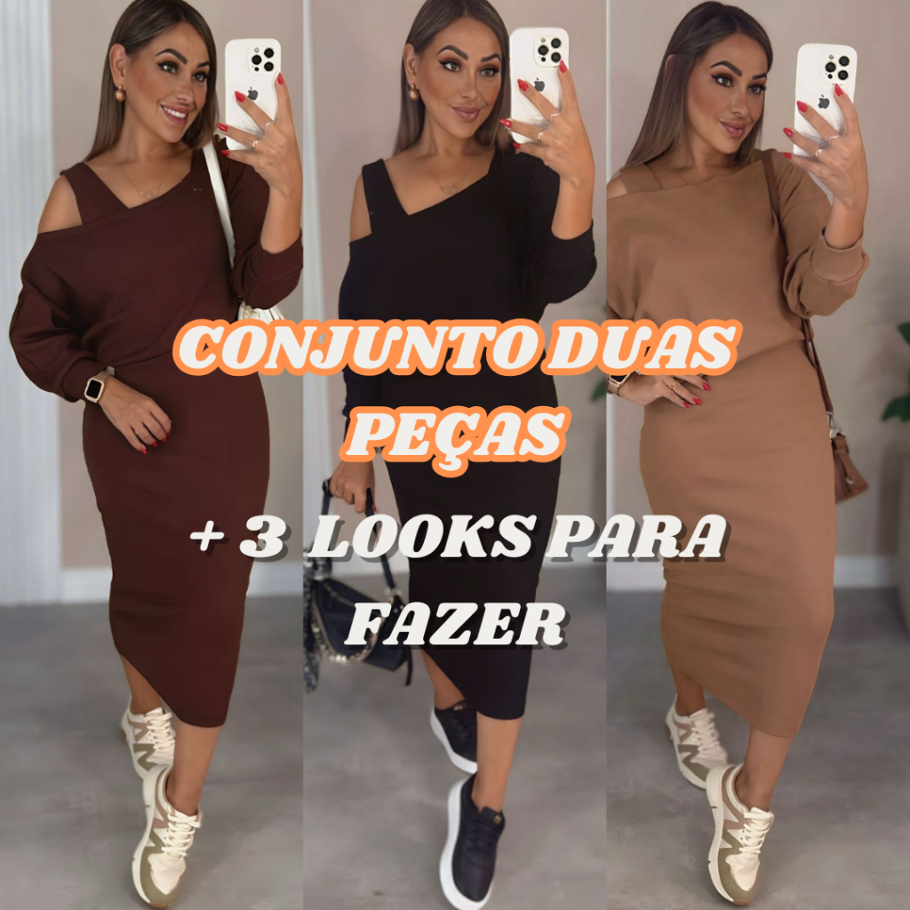 Conjunto Feminino de 2 peças Vestido Midi más Blusa Feito de Tecido Ribana Premium + de 3 looks para fazer