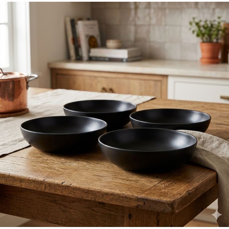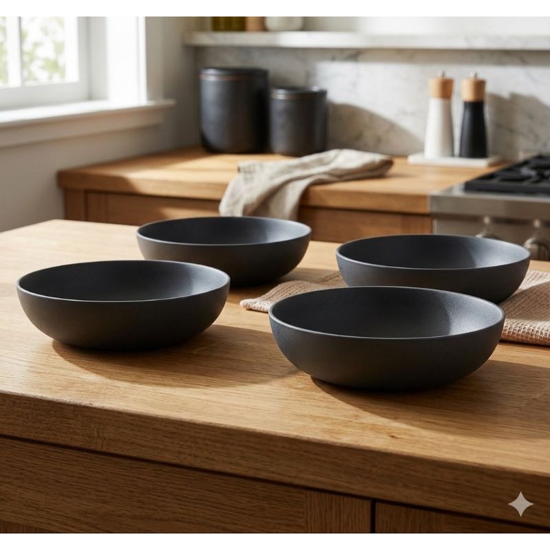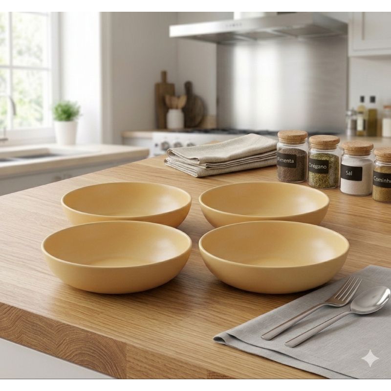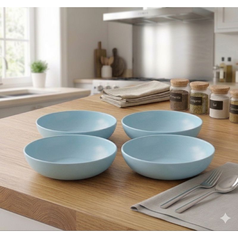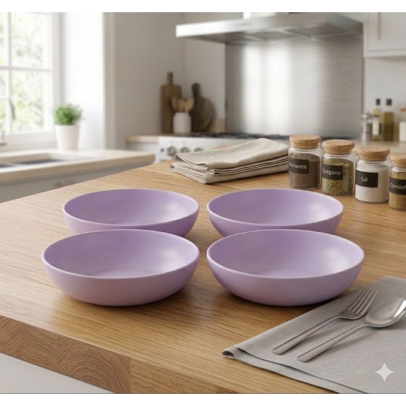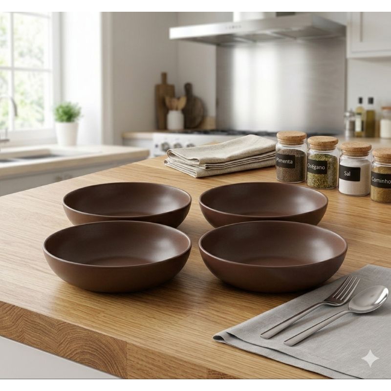 Kit Jogo 4 Pratos Fundo Colors Preto 1000ml - Helsim