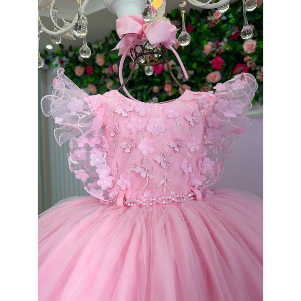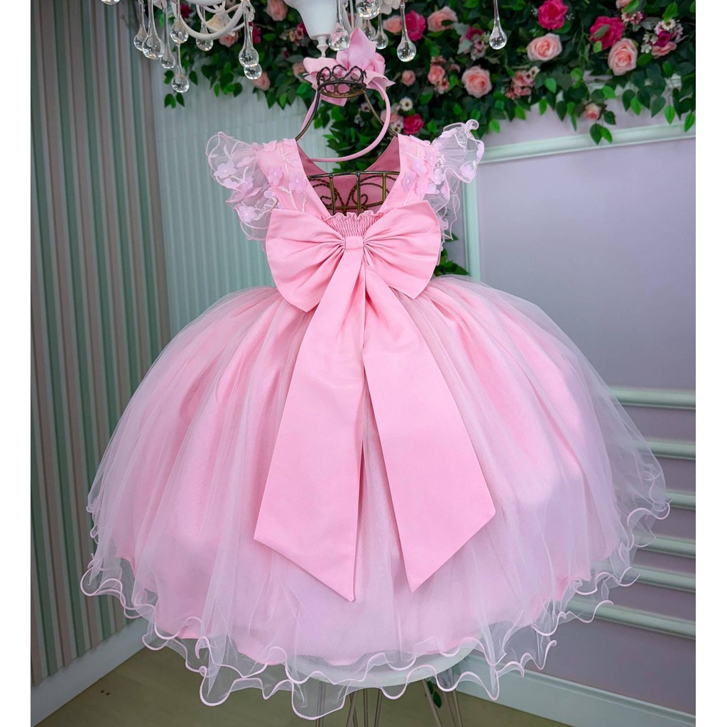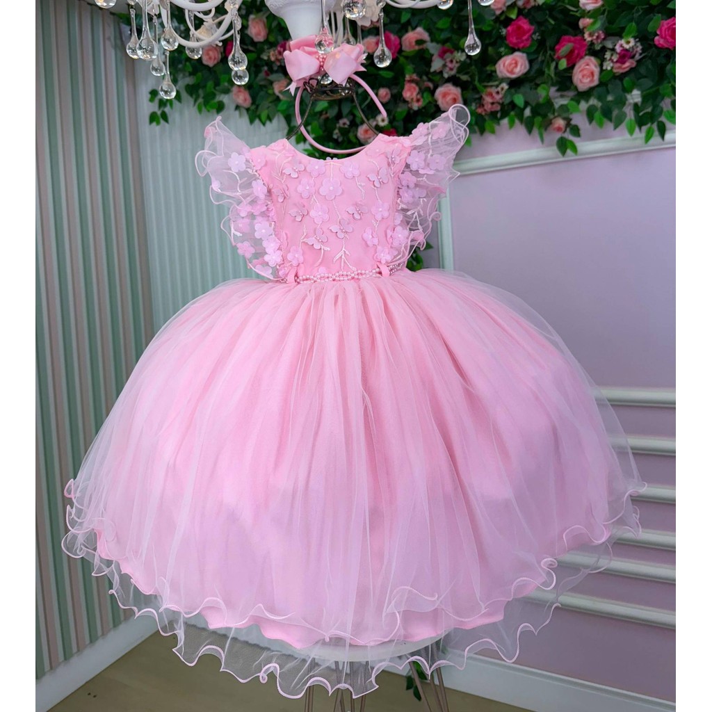 Vestido Infantil Menina Luxo Rosa Bebe festa aniversario casamento daminha jardim encantado