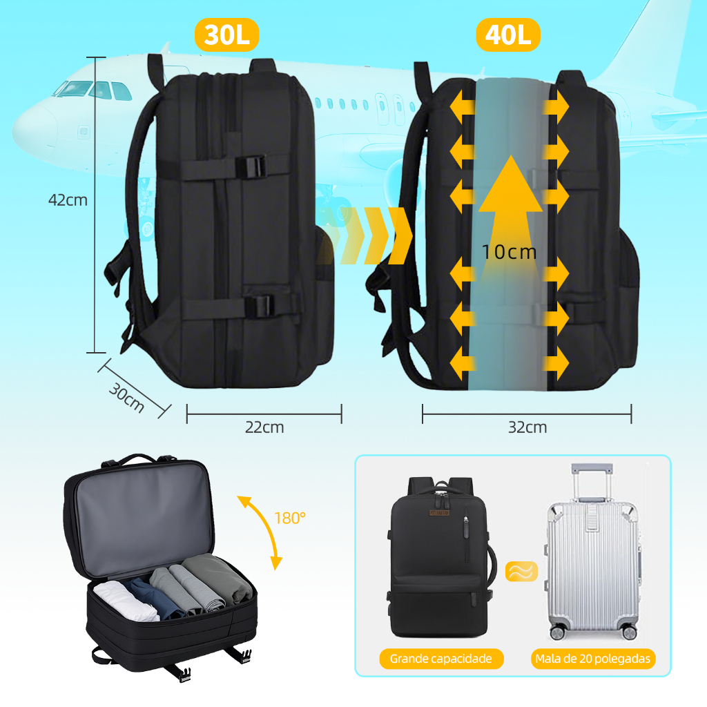 Mochila Viral Laptop Viagem Escolar Multifuncional À Prova D'água Executiva Notebook Impermeável Expansível