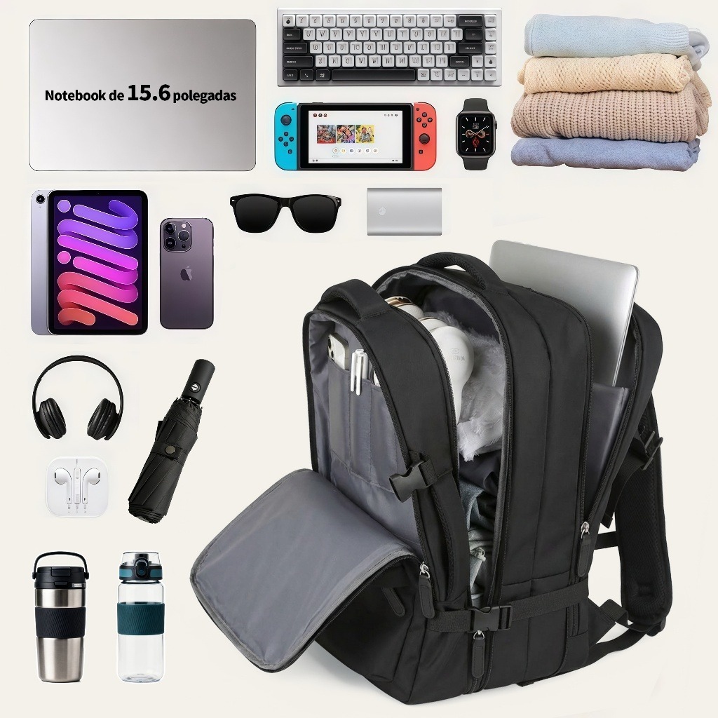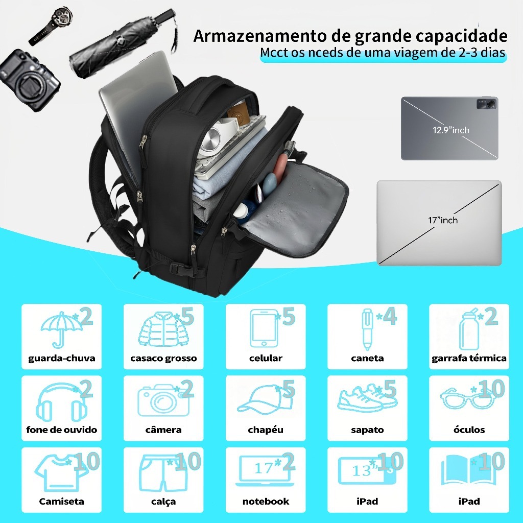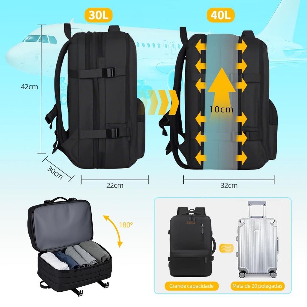 Mochila Executiva Viagem Multifuncional Impermeável Grande Volume p/ Notebook 15.6" com USB e Tamanho Avião