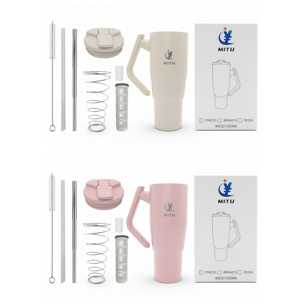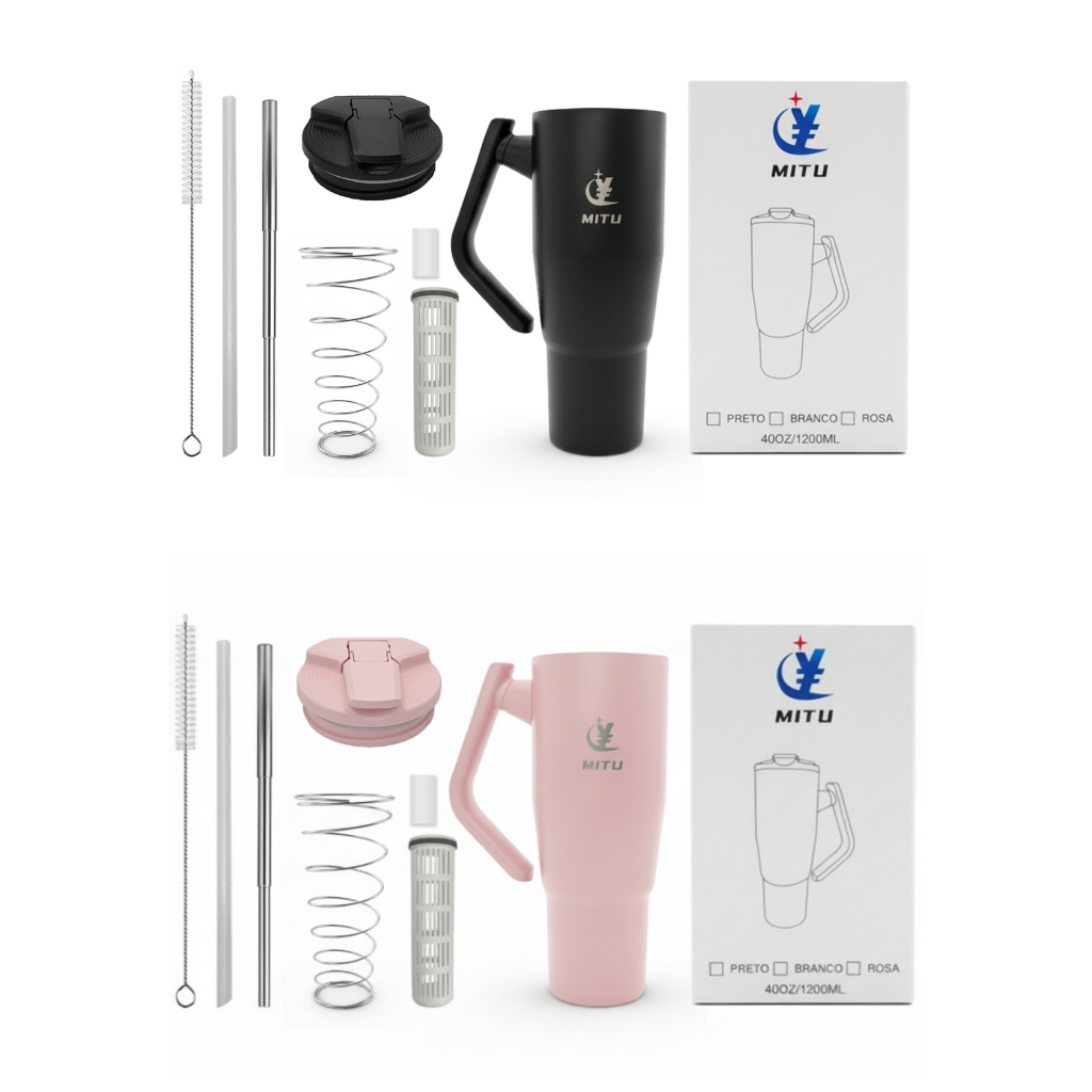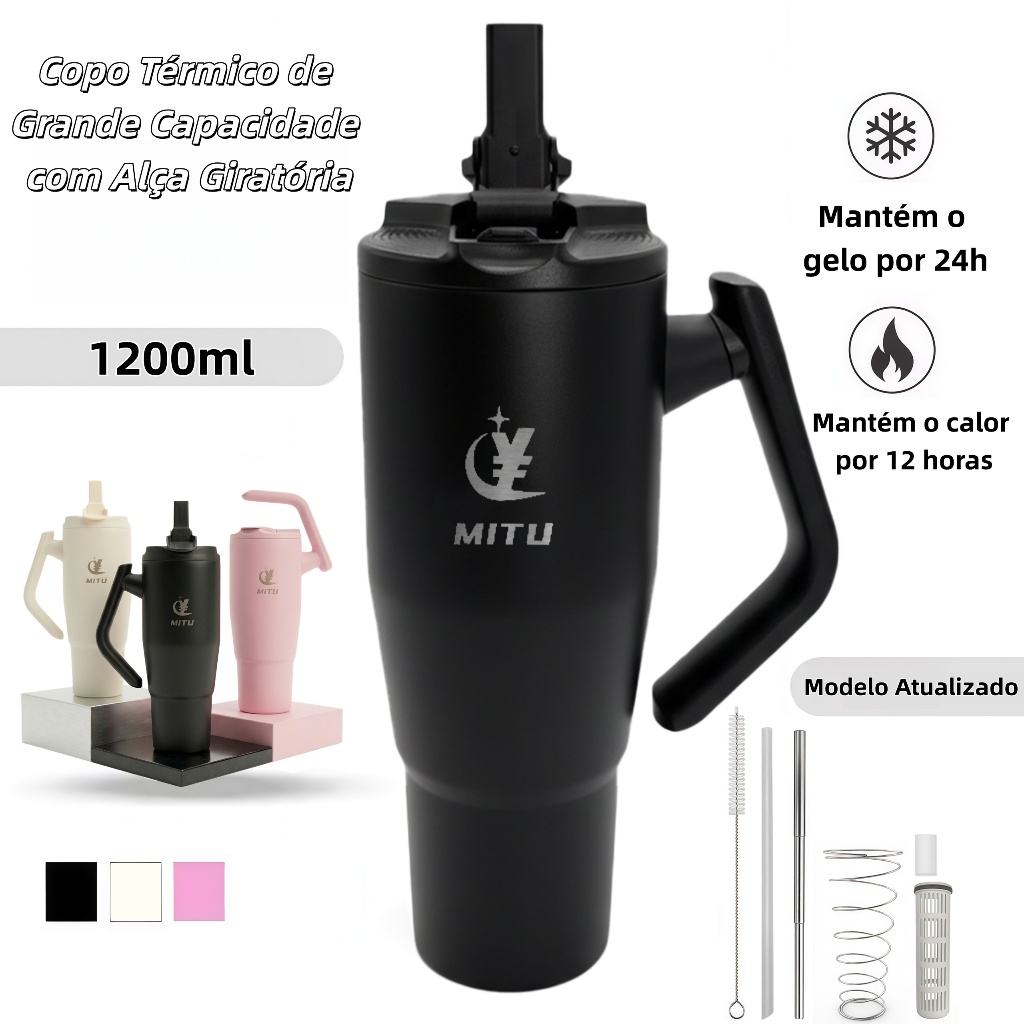 Caneca Térmica Inox 1200ml/1.2L Novo Modelo Estilo Capacidade Generosa 304 Com Canudo Retrátil Inox e Alça Giratória