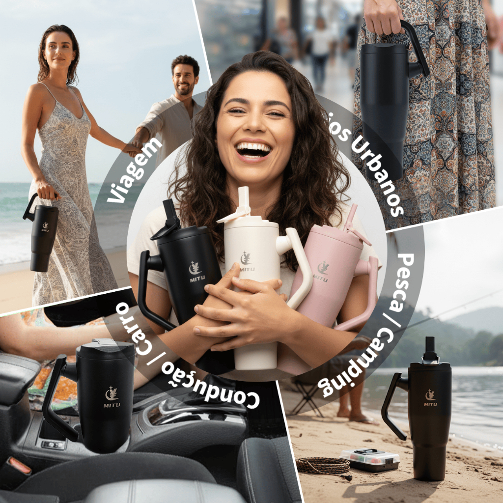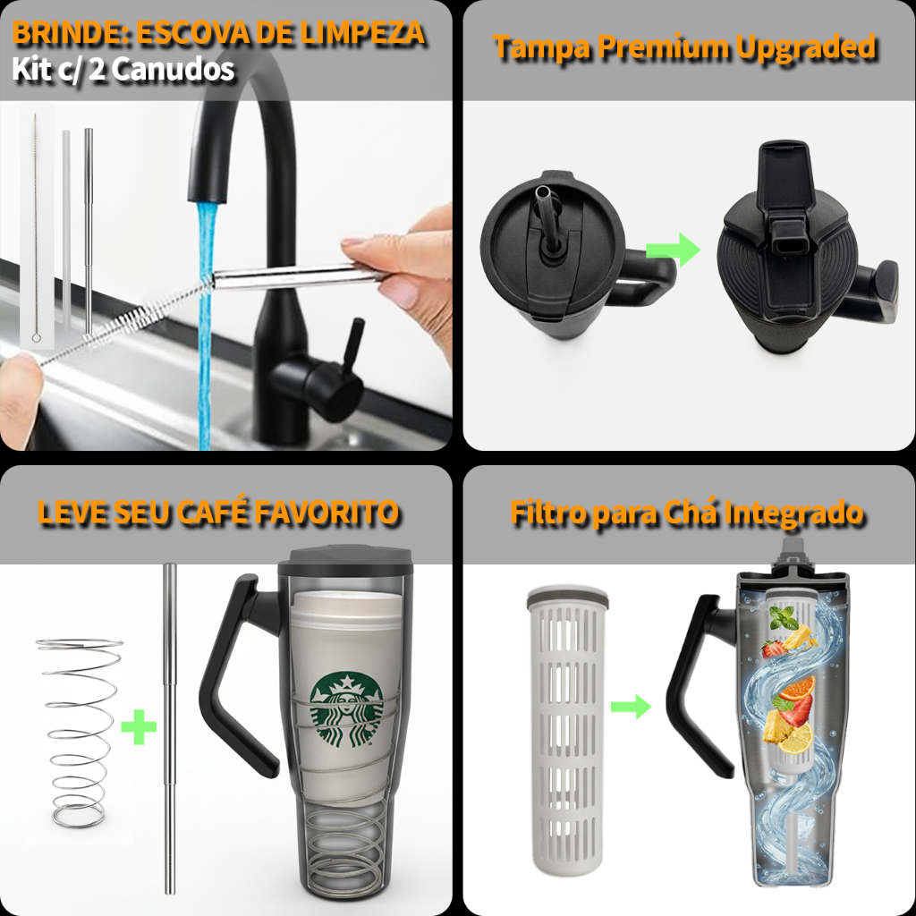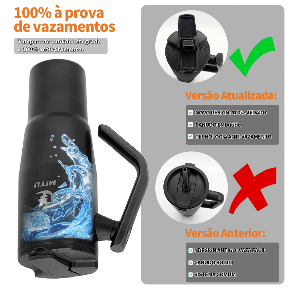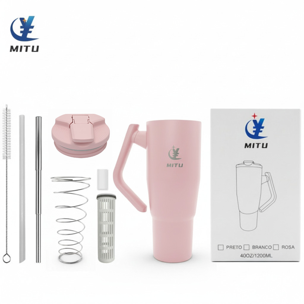 Caneca Térmica Inox 1200ml/1.2L Novo Modelo Estilo Capacidade Generosa 304 Com Canudo Retrátil Inox e Alça Giratória