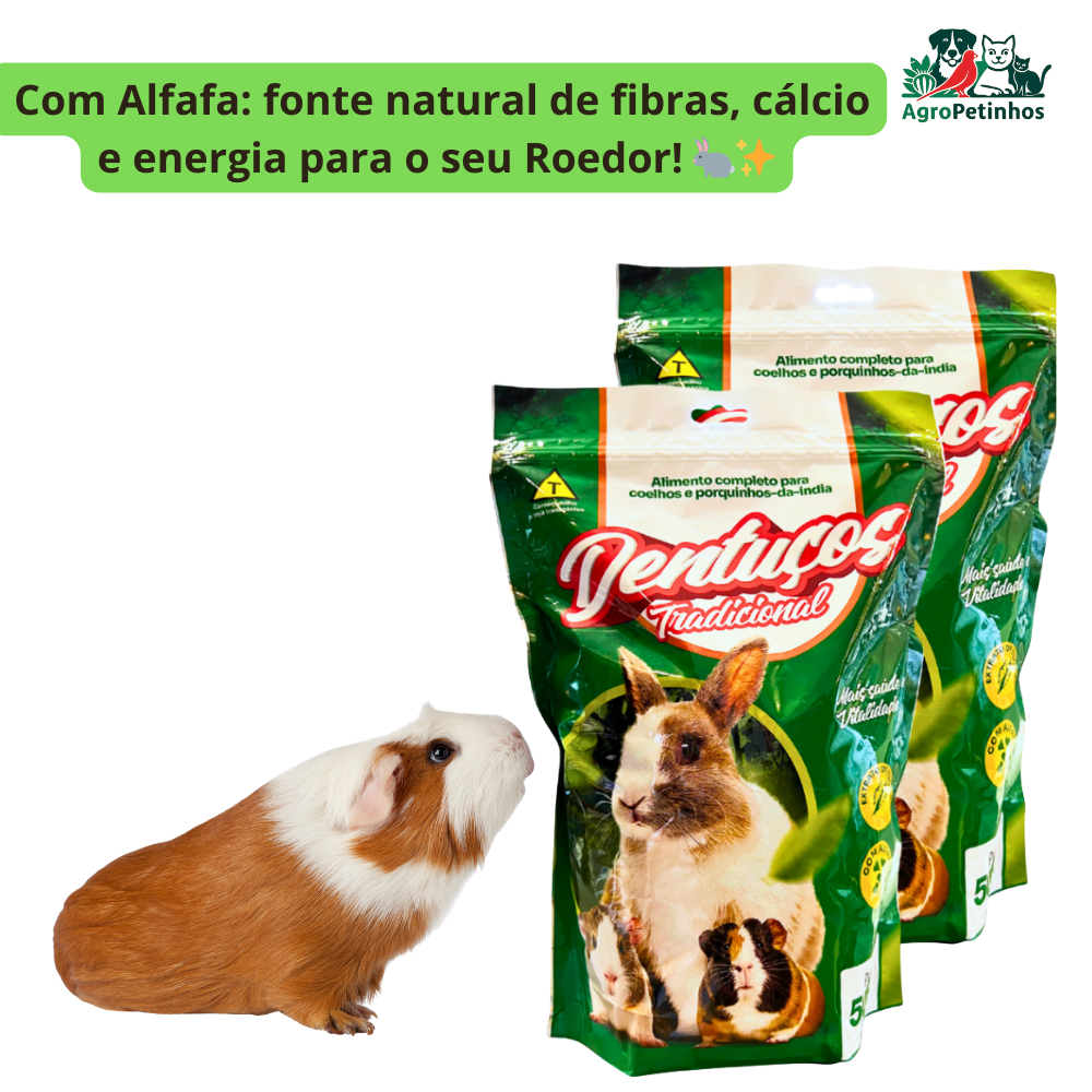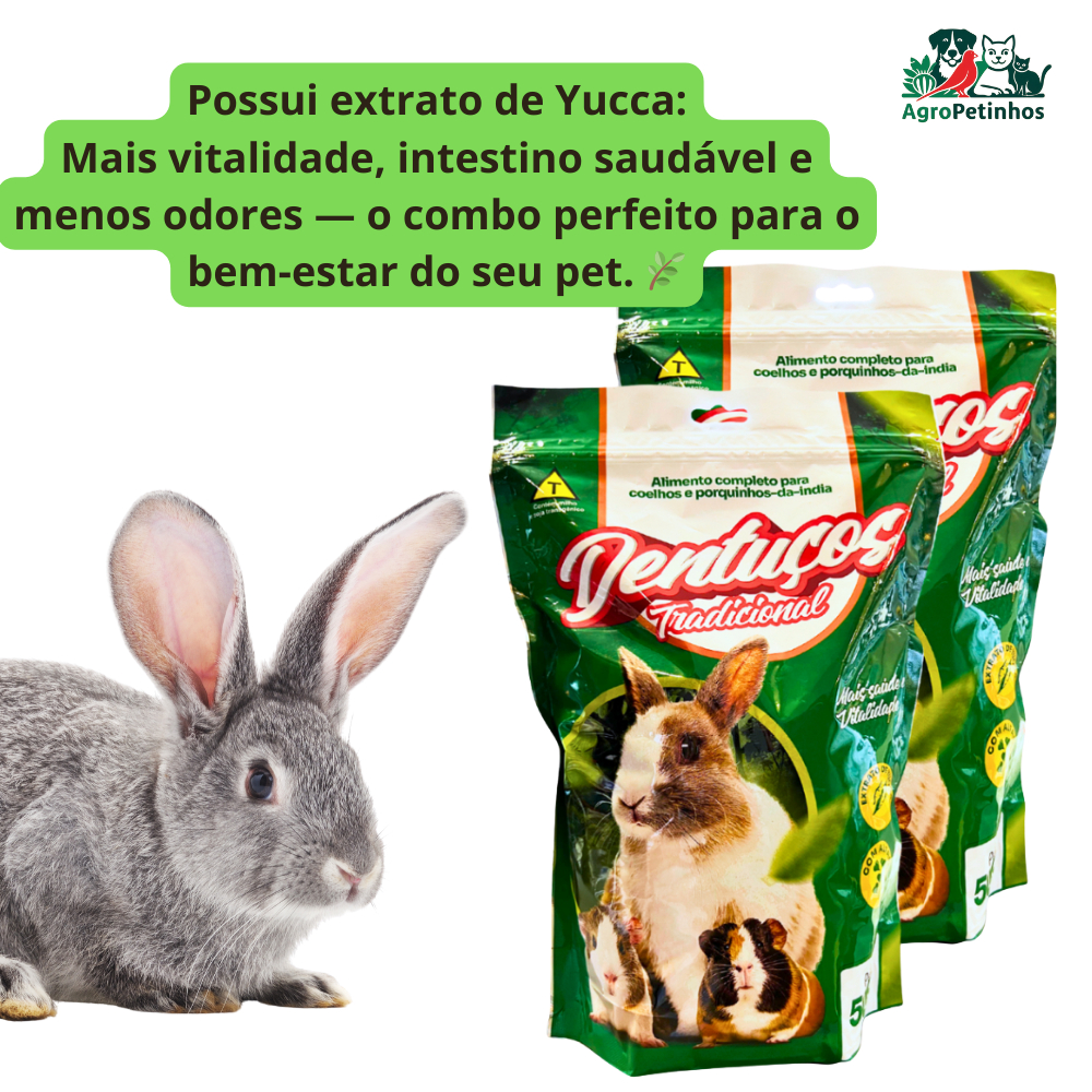 Ração Dentuços Natural para Coelhos e Roedores – Mini Coelhos, Hamsters e Porquinho-da-Índia