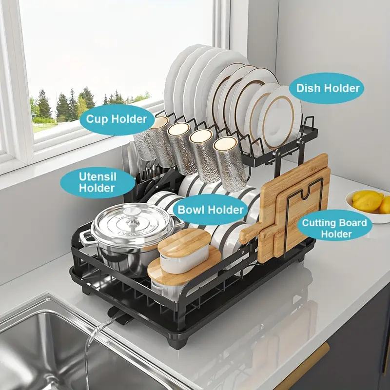 Escorredor De Louça 2 Em 1 Decoteam 2 Níveis E Ralo Ajustável