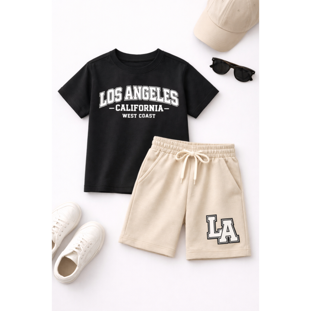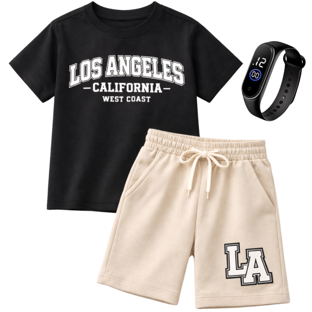 Kit Infantil Los Angeles Camiseta + Bermuda Estiloso Mais Relogio