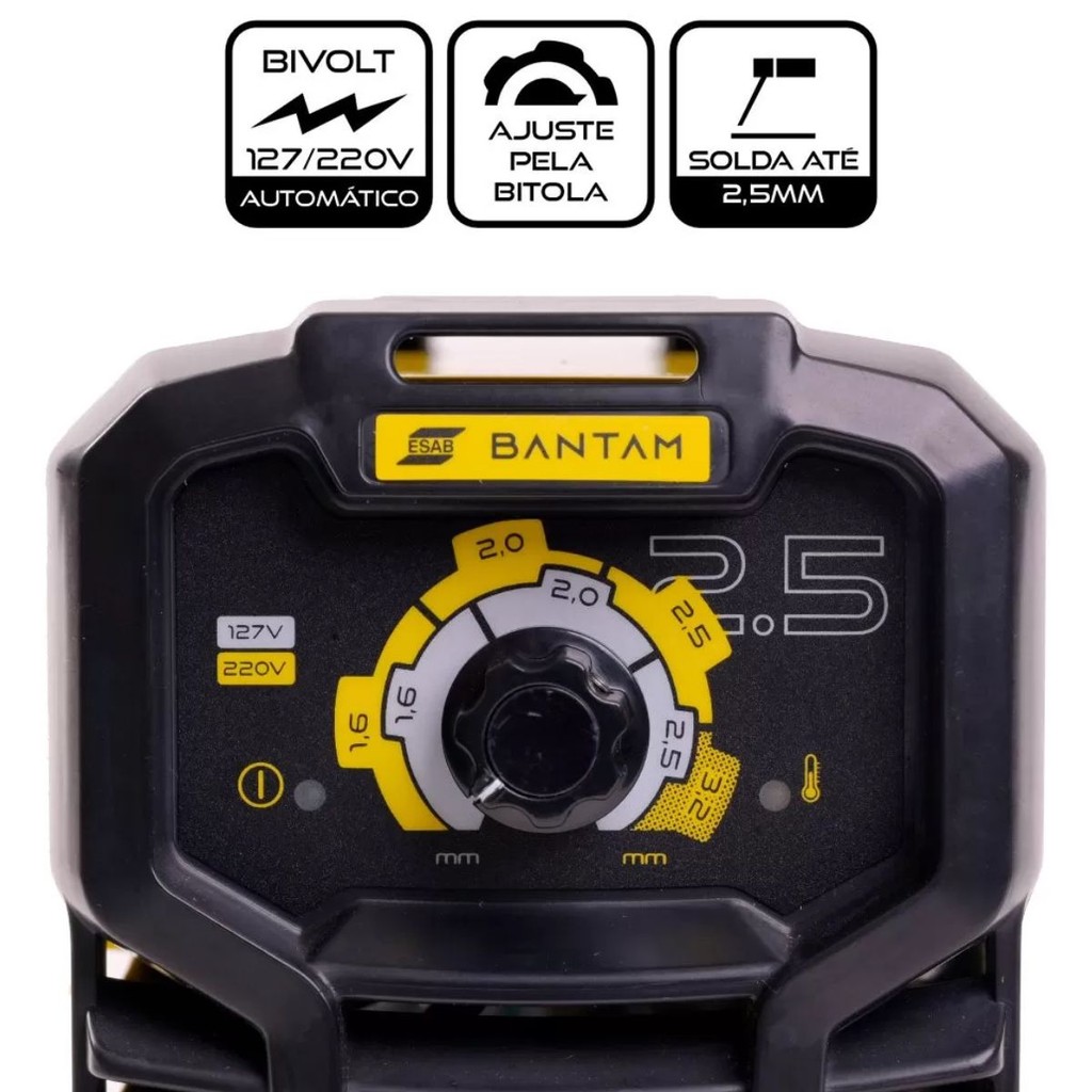 Máquina de Solda Inversora ESAB Bantam 2.5 Bivolt 110v/220v - Leve e Compacta
