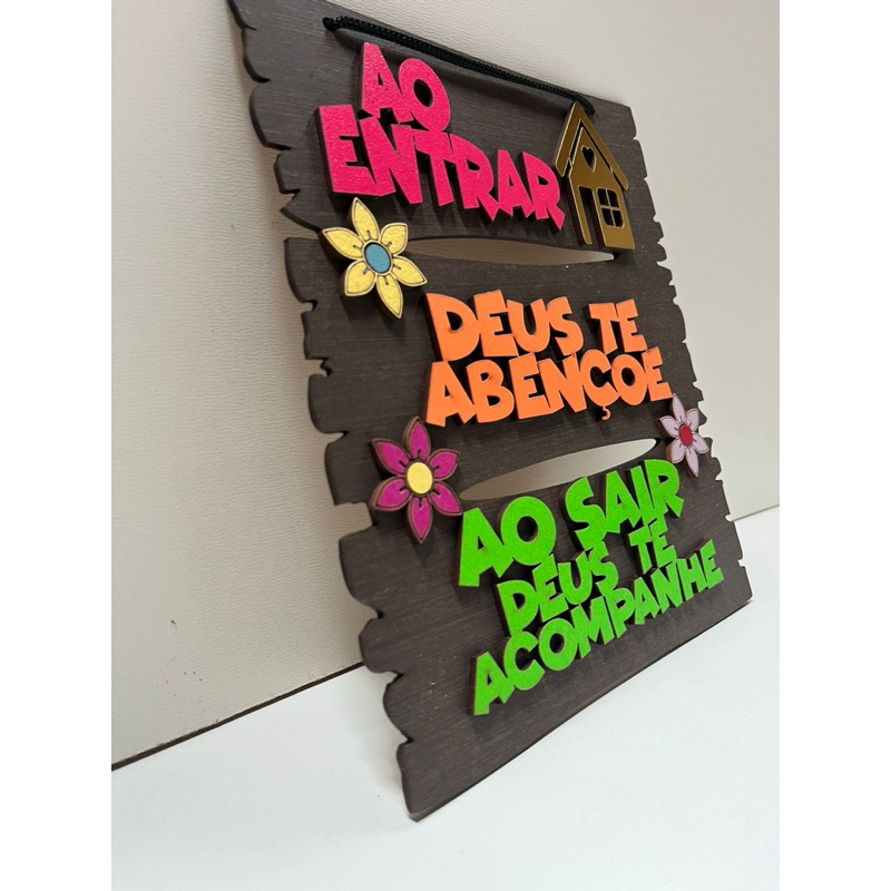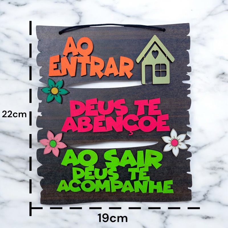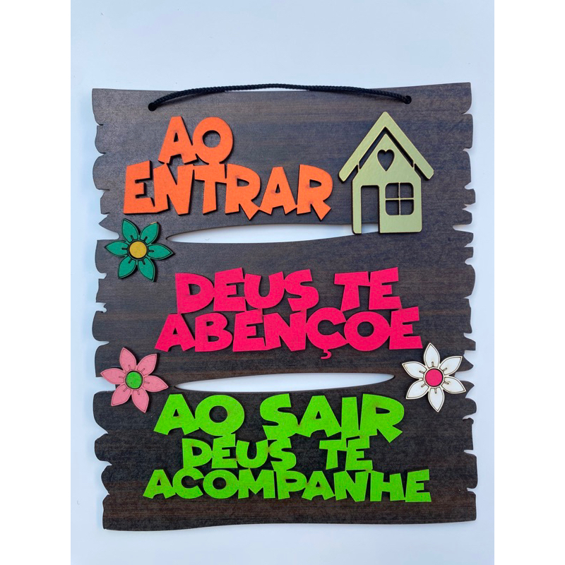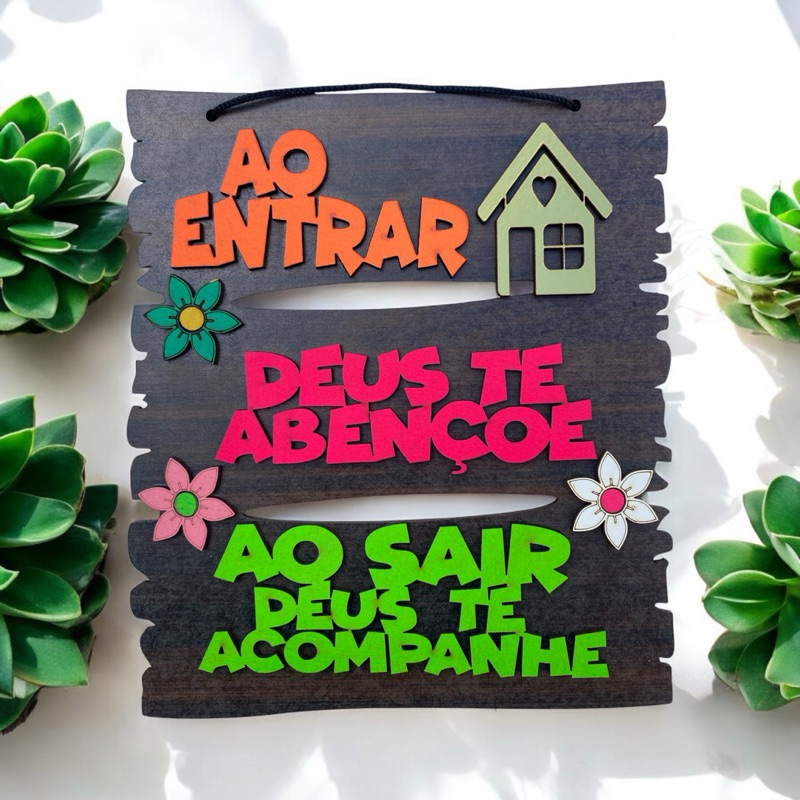 Placa Decorativa Mdf Modelo Ao Entrar Deus Abençoe NEON vivo