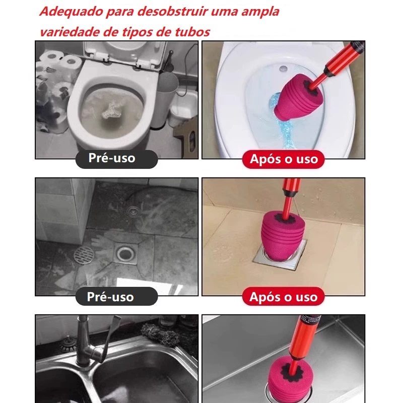 Desentupidor Manual de Cano 150mm para Vaso, Pia e Ralo - Tipo Bomba de Sucção